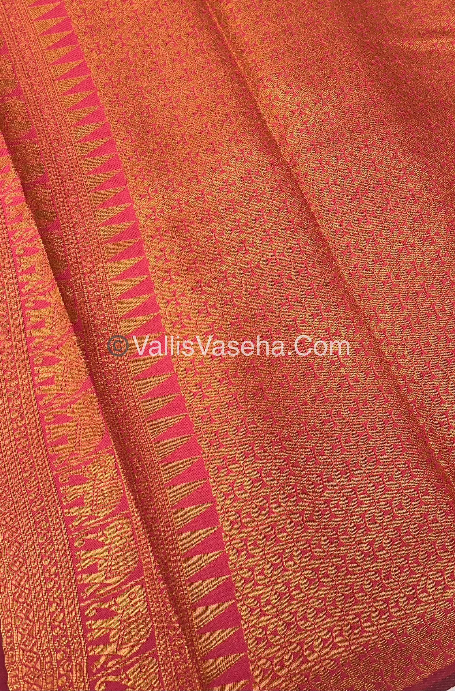 Kanchi Semi Silk - Elephant Border& design - Cream with Peachish Pink - VVSSS005