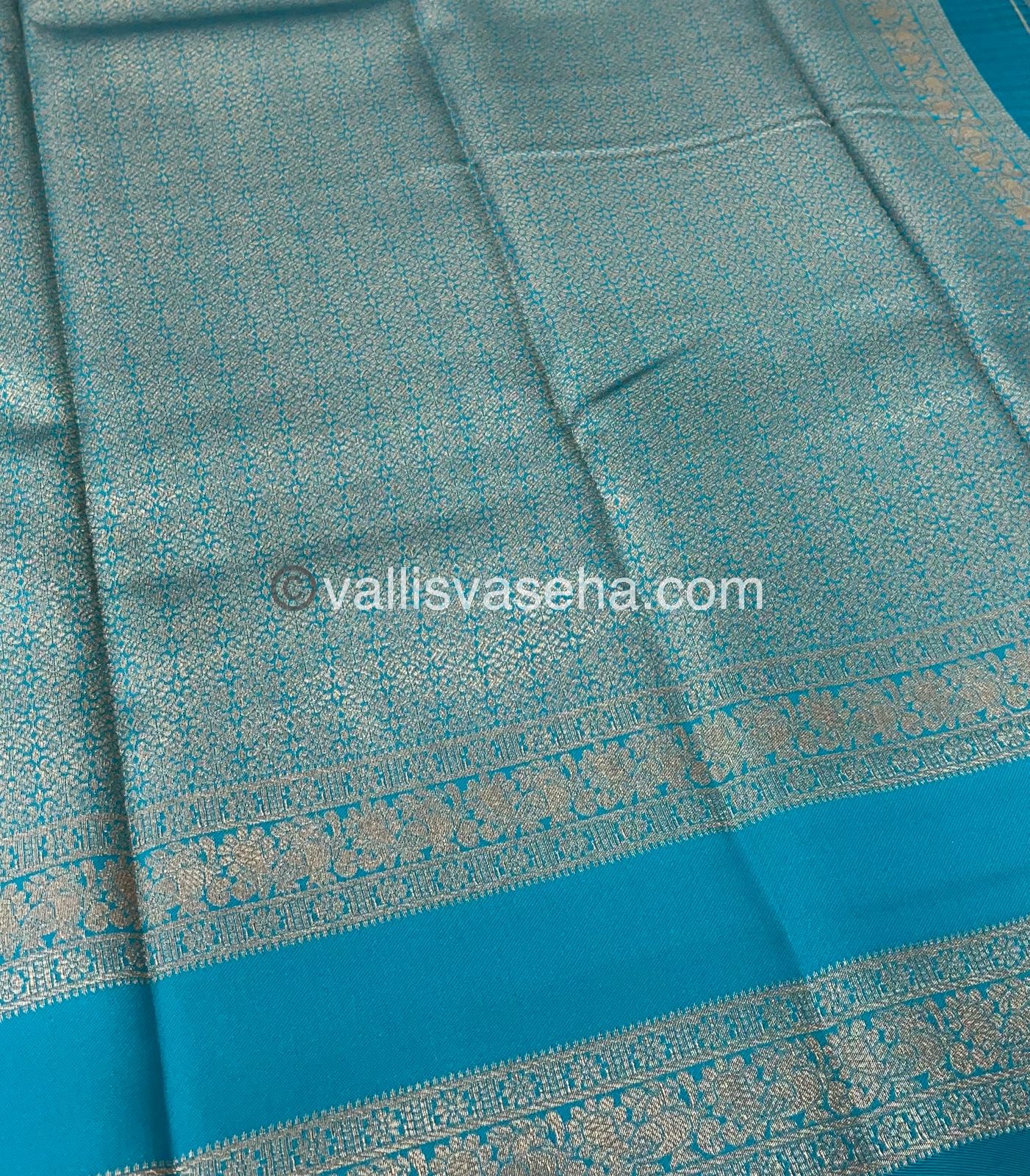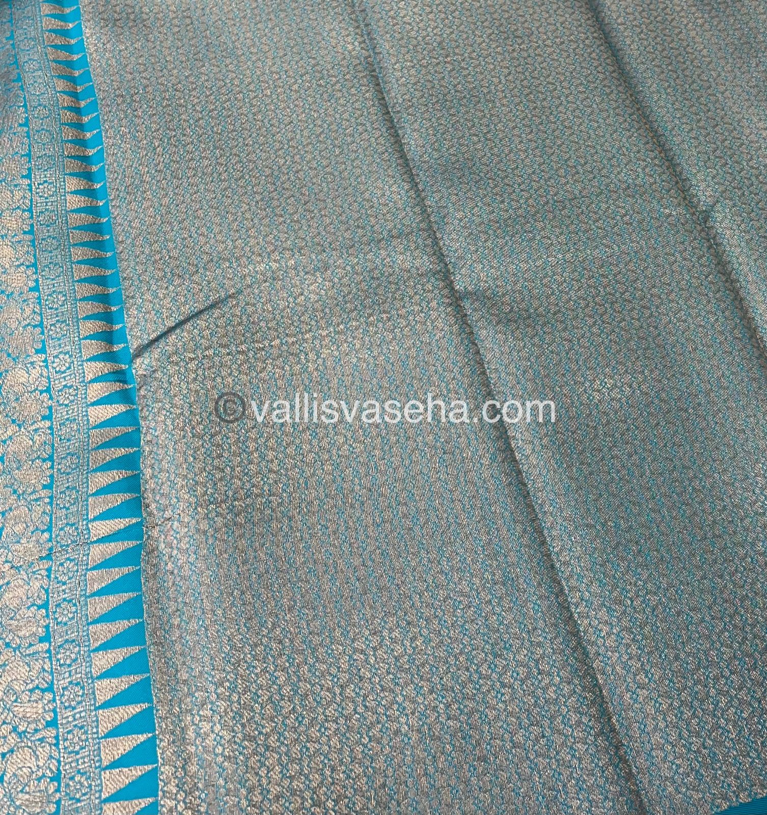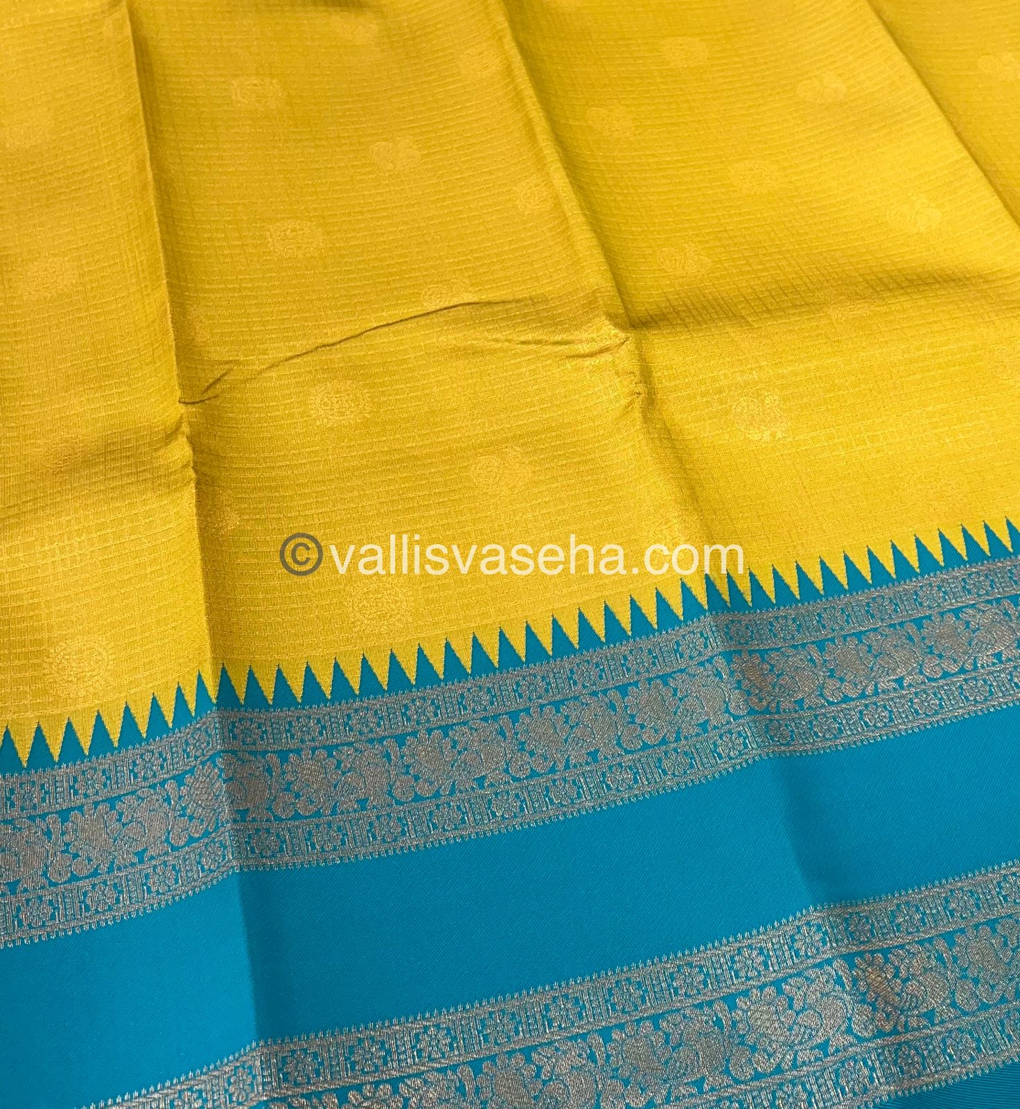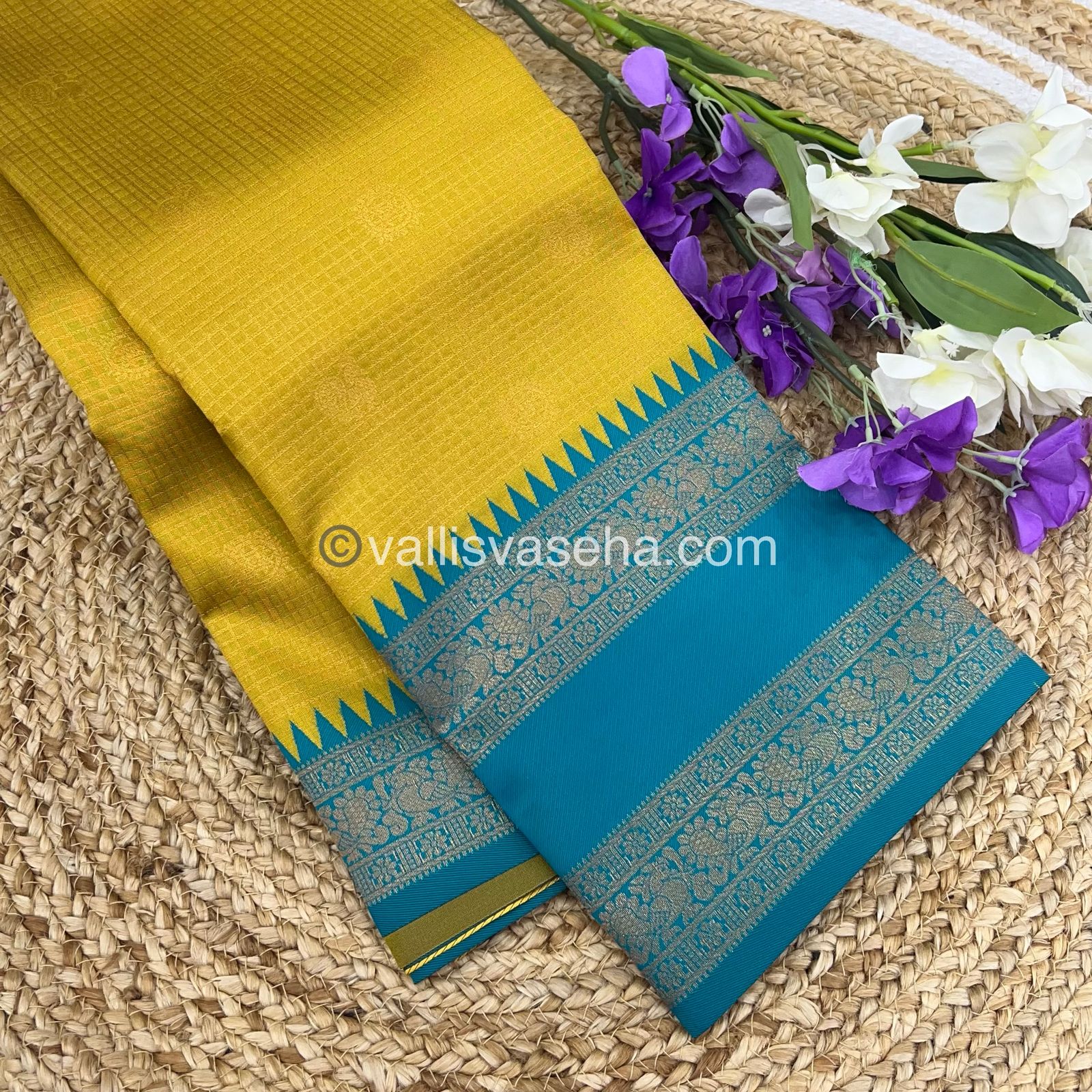 Kanchi Semi Silk - Mayil & Chakkaram design - Yellow with Blue - VVKSS001