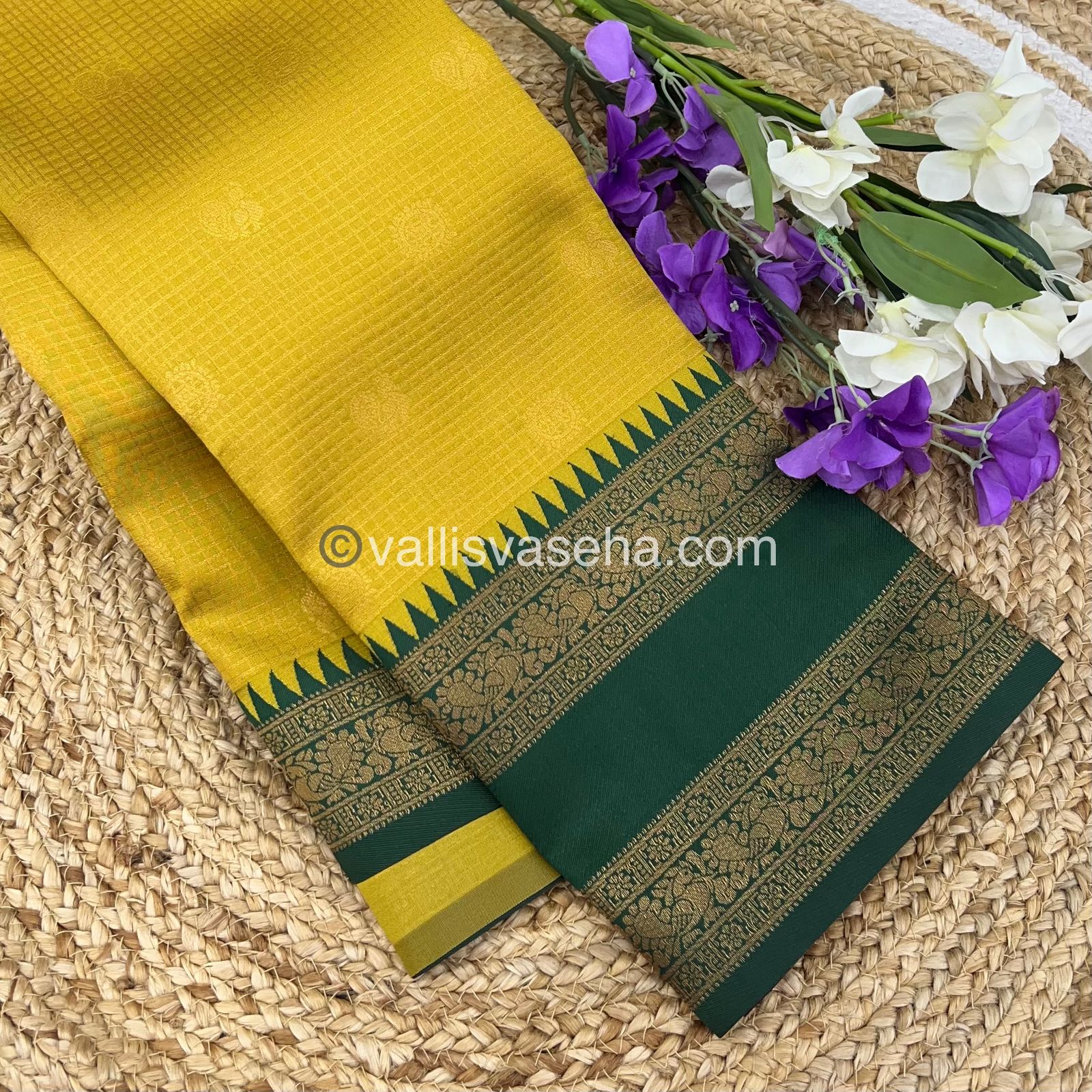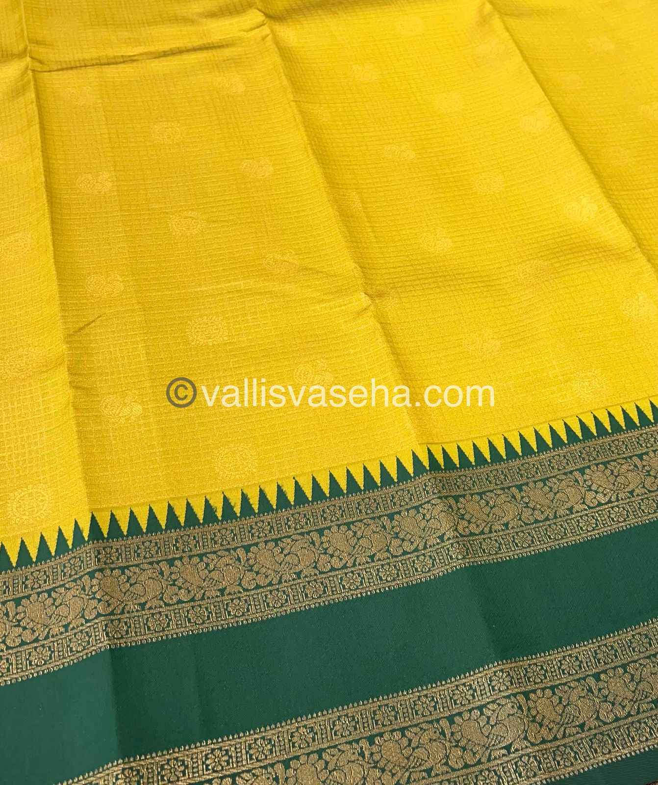 Kanchi Semi Silk - Mayil & Chakkaram design - Yellow with Green - VVKSS001