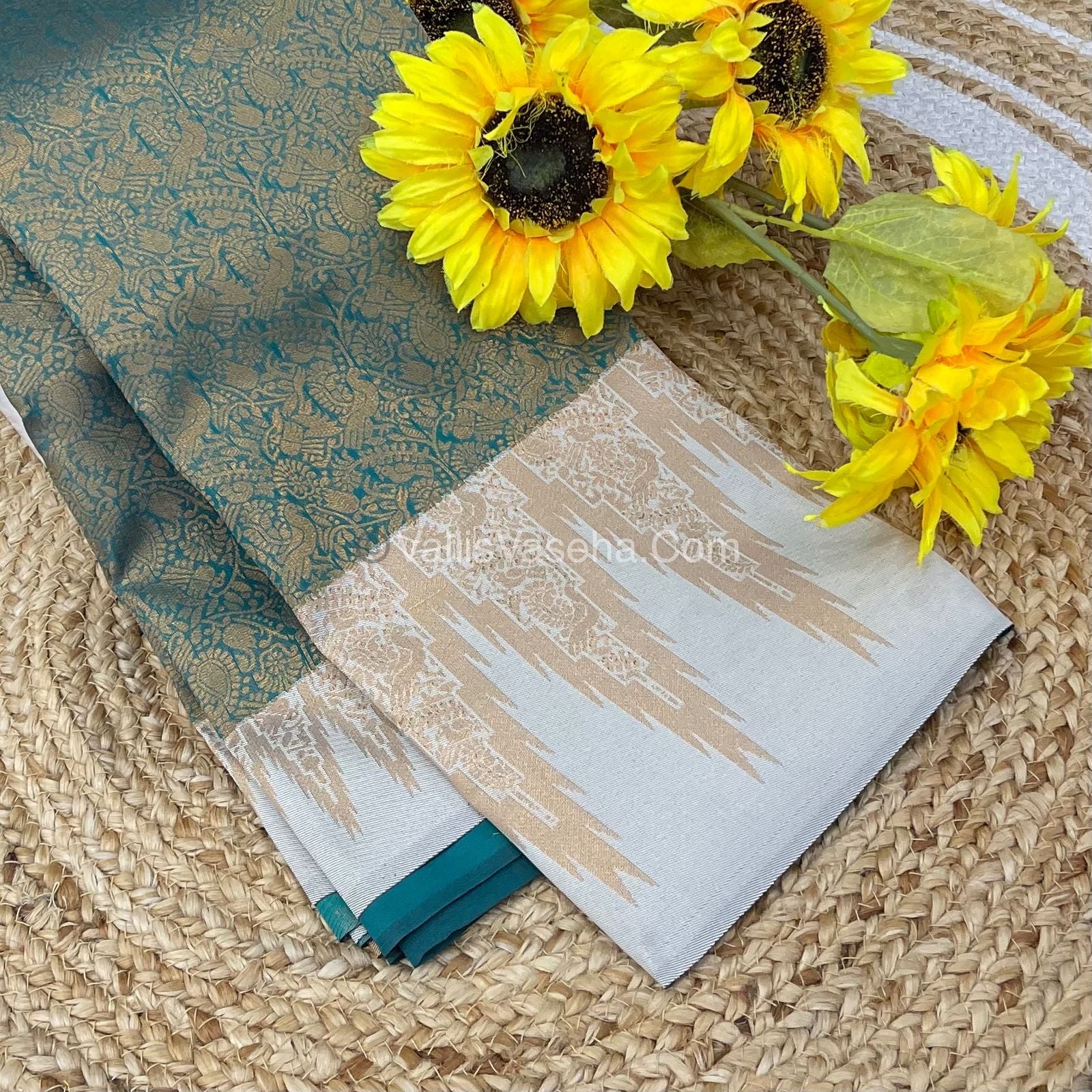 Kanchi Semi Silk - Ramar Green with Cream - VVKSS003