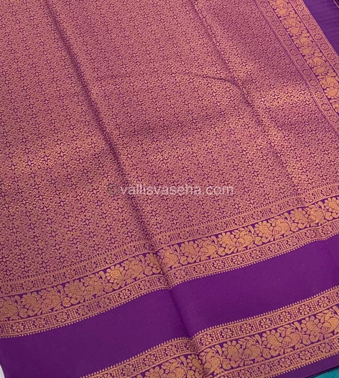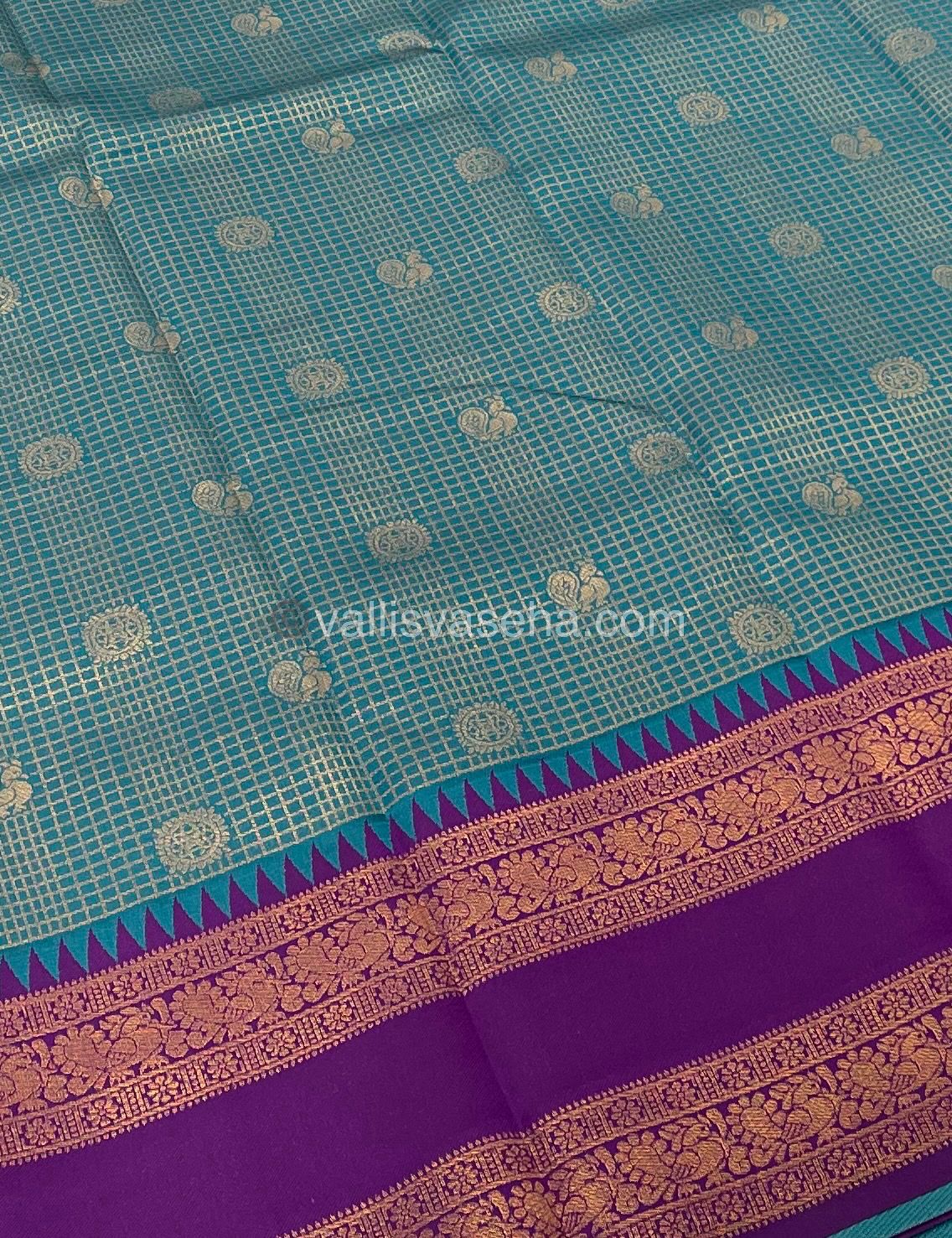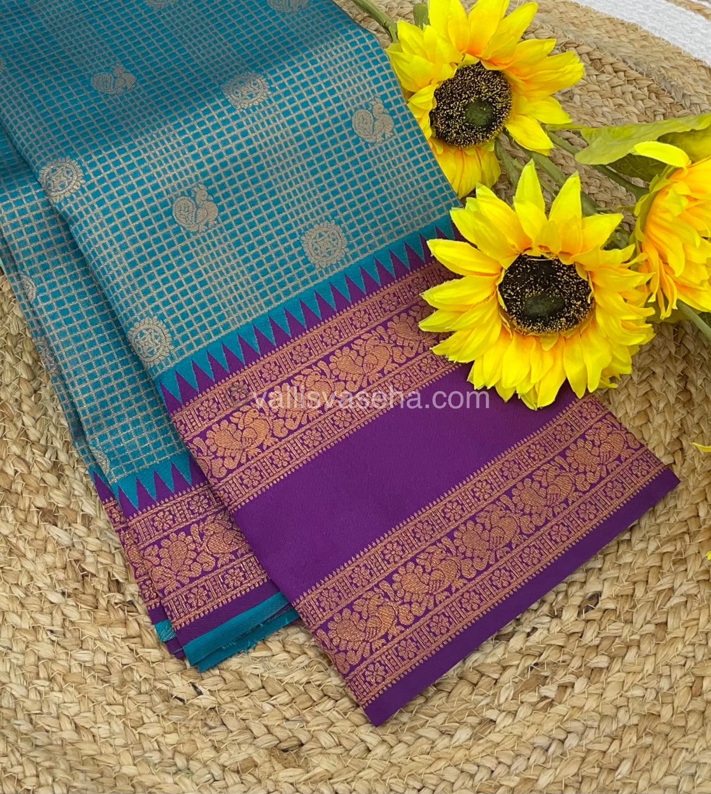 Kanchi Semi Silk - Blue with Purple - Mayil & Chakkaram design - VVKSS001