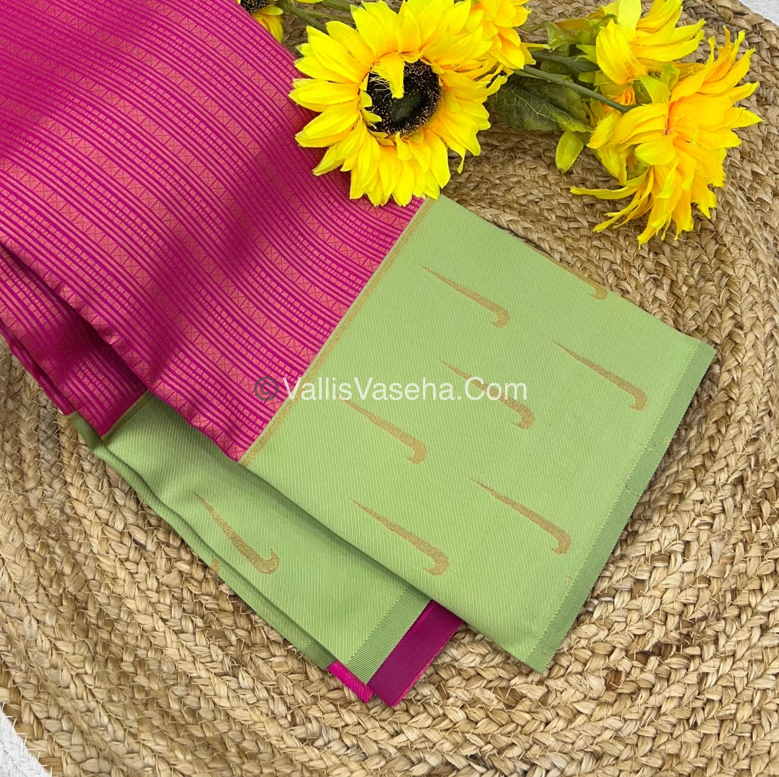 Kanchi Semi Silk - Pink with Green - VVKSS001