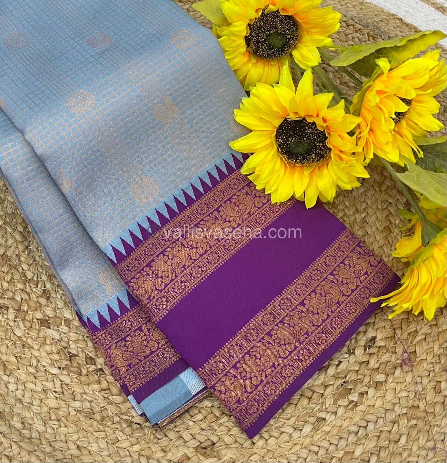 Kanchi Semi Silk - Ice Blue (Grey Shade)with Purple - Mayil & Chakkaram design - VVKSS001