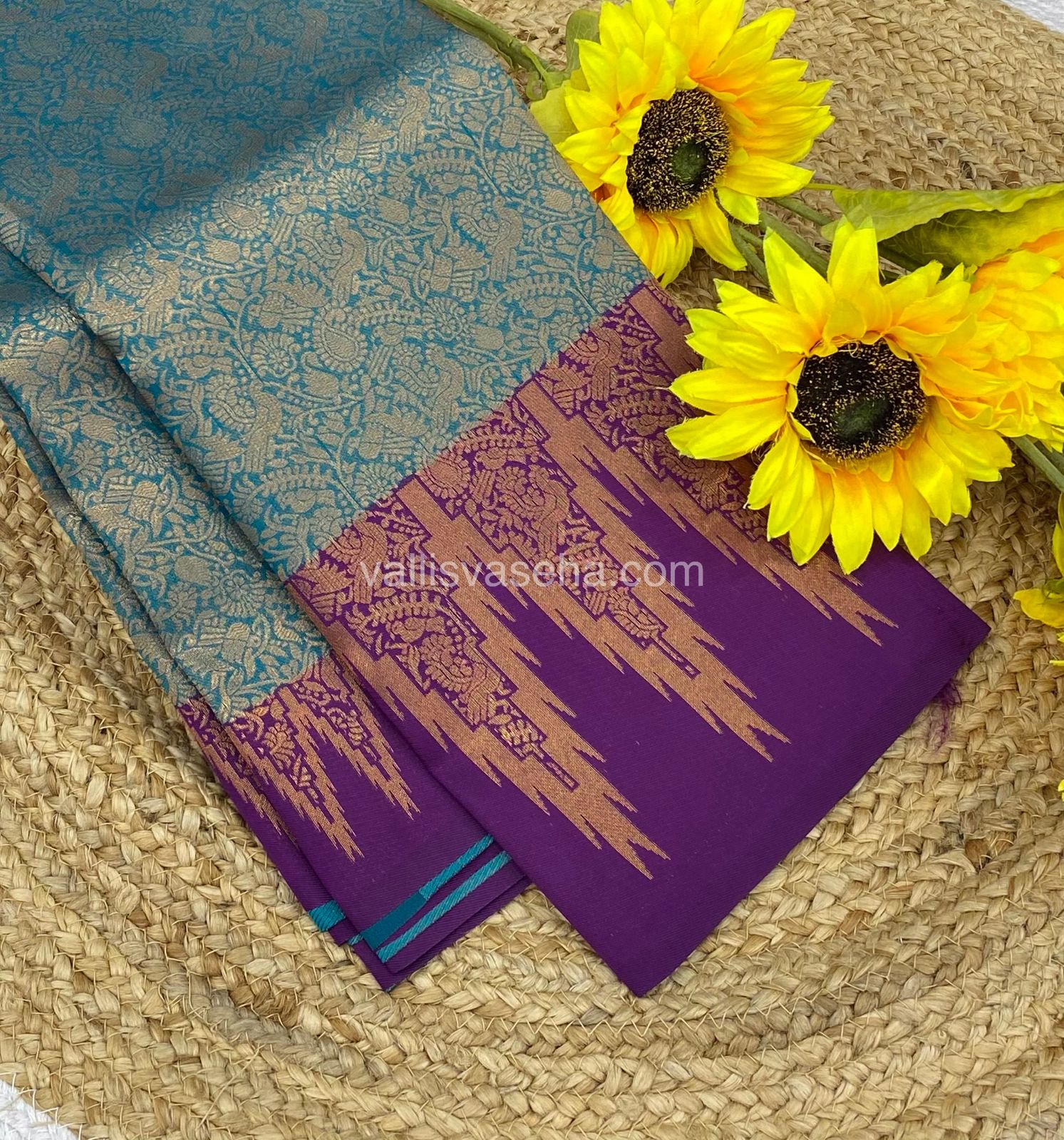 Kanchi Semi Silk - Blue With Purple - Temple Border - VVKSS003