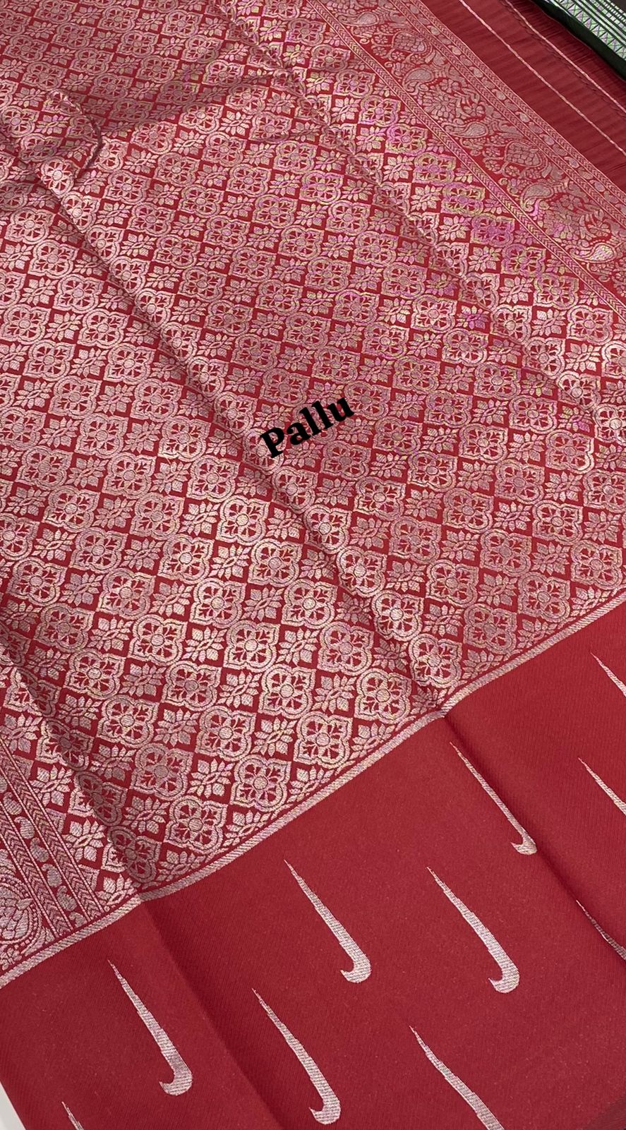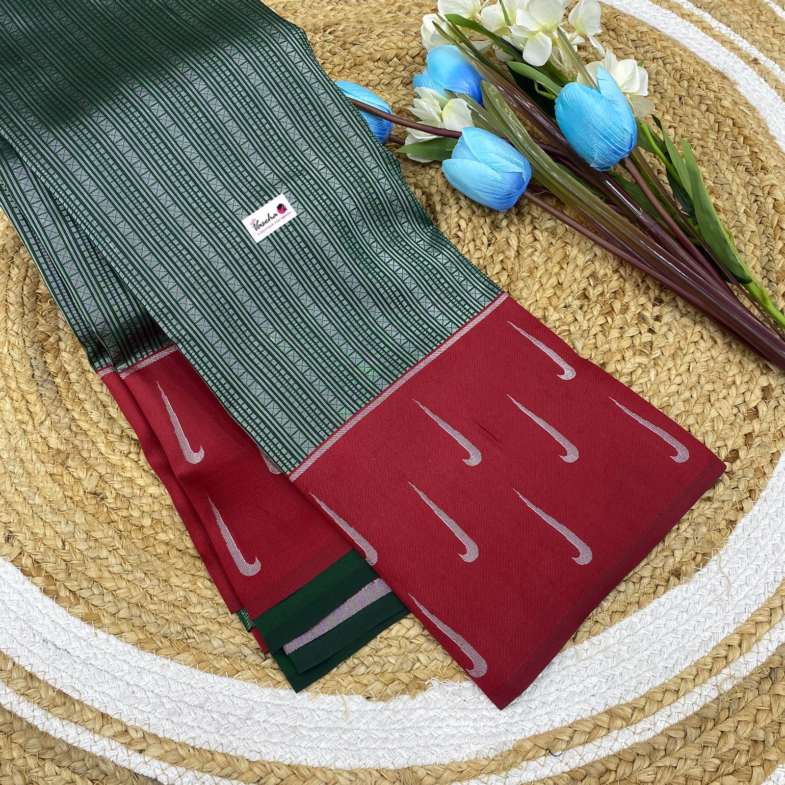 Kanchi Semi Silk - Green with Merunish Red - VVKSS001
