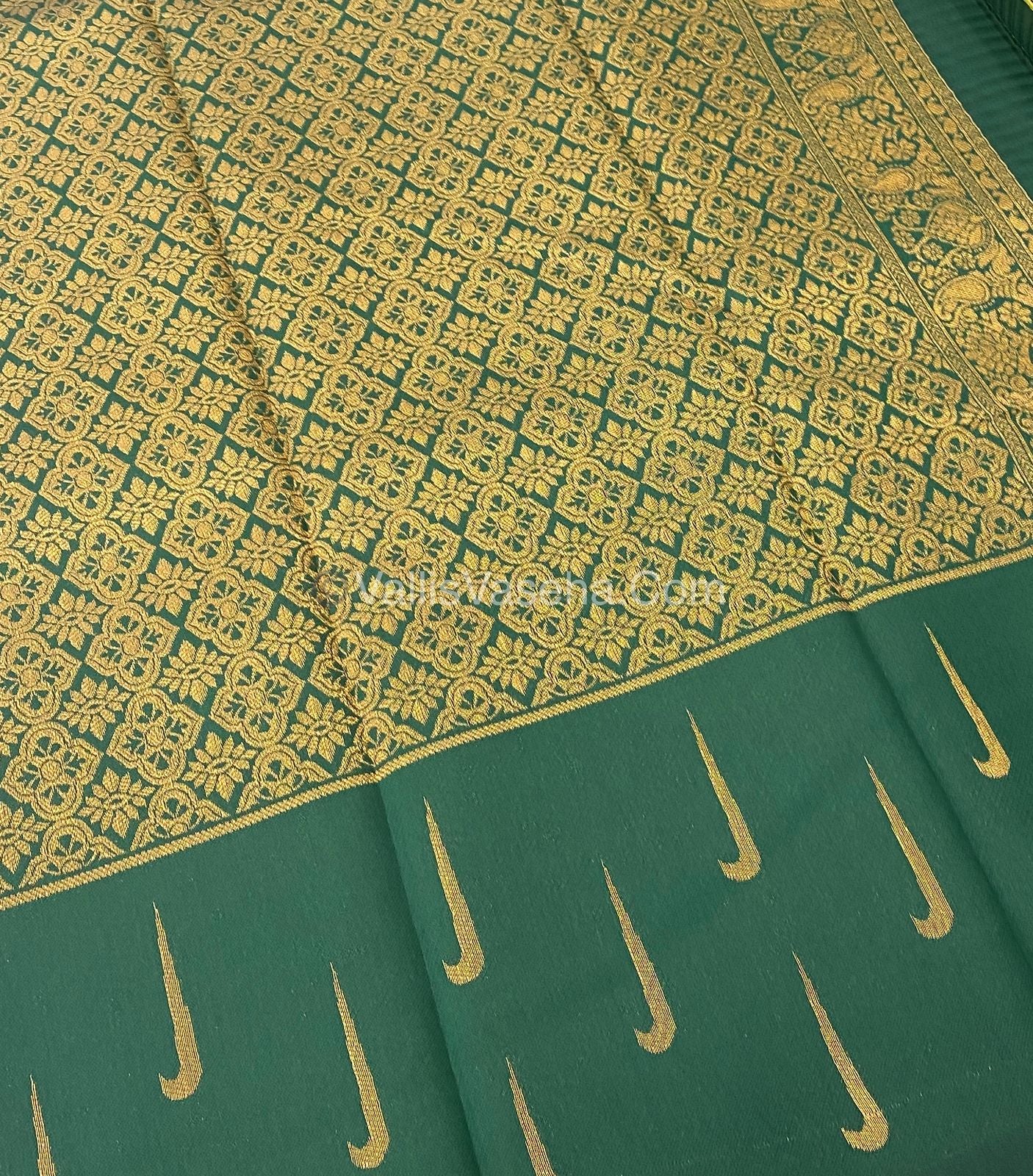 Stunning Kanchi Semi Silk sarees - All over vertical intricate design Copper Gold zari weaving and Beautiful Paithani Copper gold zari design border with grand Pallu and grand brocade blouse design. Occasional / Party wear saree . Good for gifting purpose.