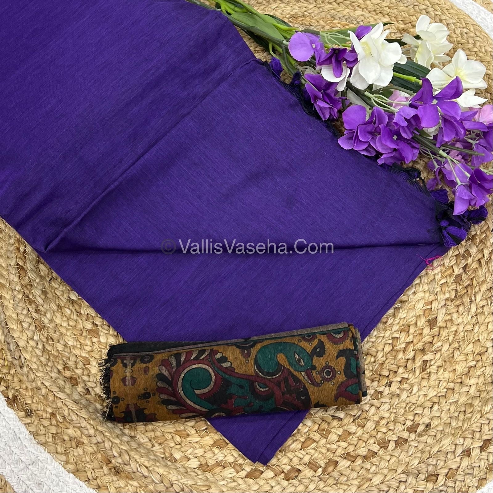 Khadi Cotton Sarees with Kalamkari Blouse - VVKCK001