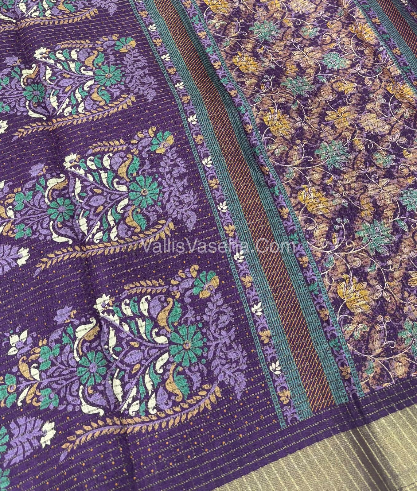 Light Weight Fancy Mixed Kota Cotton - Floral Design Printed Saree - Purple Shade - VVKPC002