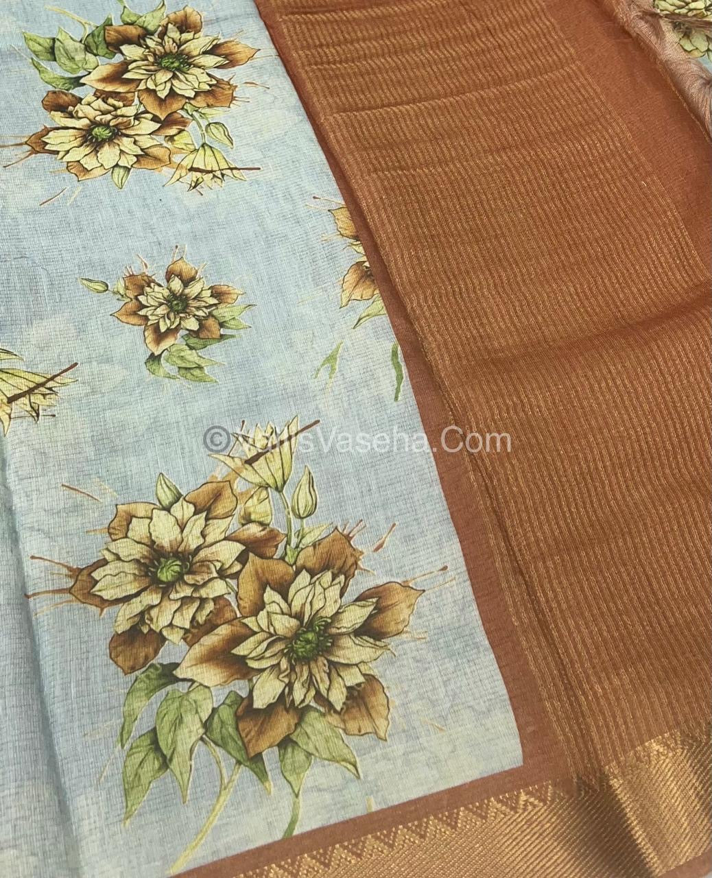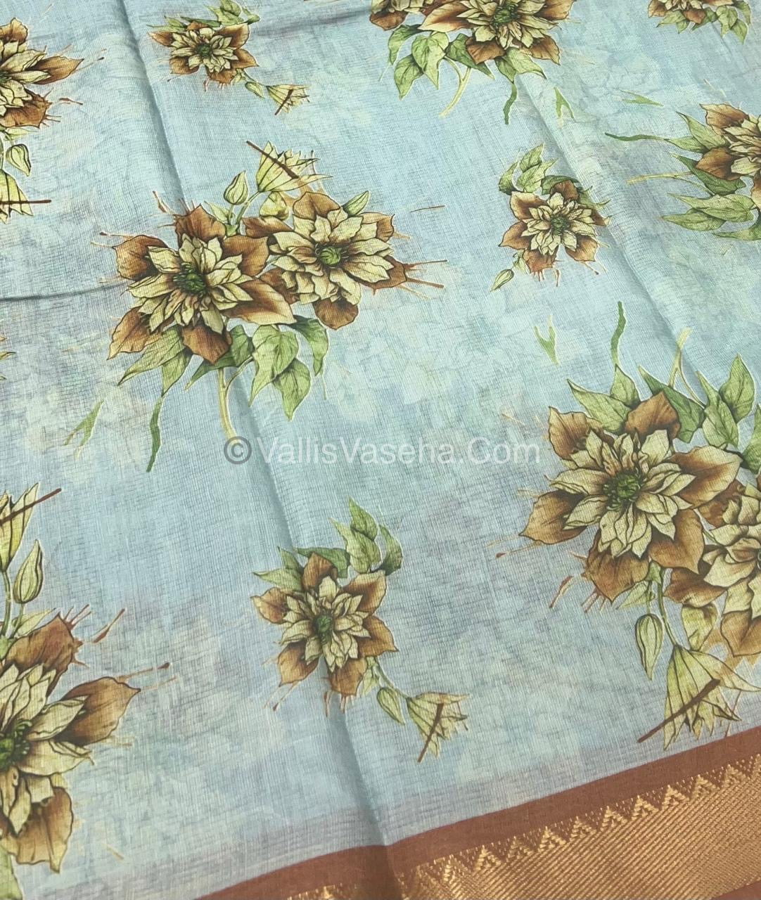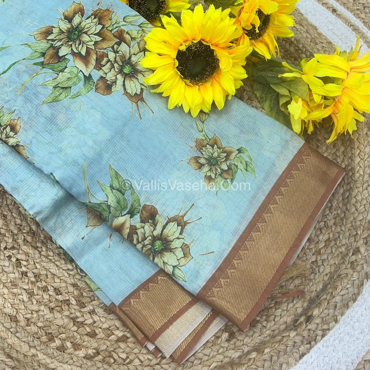 Beautiful Pastel Shades - Light weight & Soft and flowy texture . Mangalgiri Silk Sarees with all over floral prints and Contrast Pallu and Blouse.