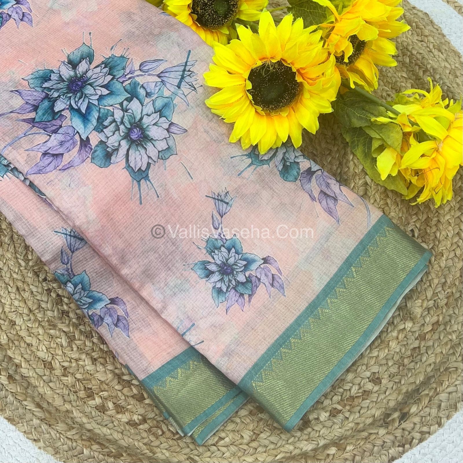 Beautiful Pastel Shades - Light weight & Soft and flowy texture . Mangalgiri Silk Sarees with all over floral prints and Contrast Pallu and Blouse.