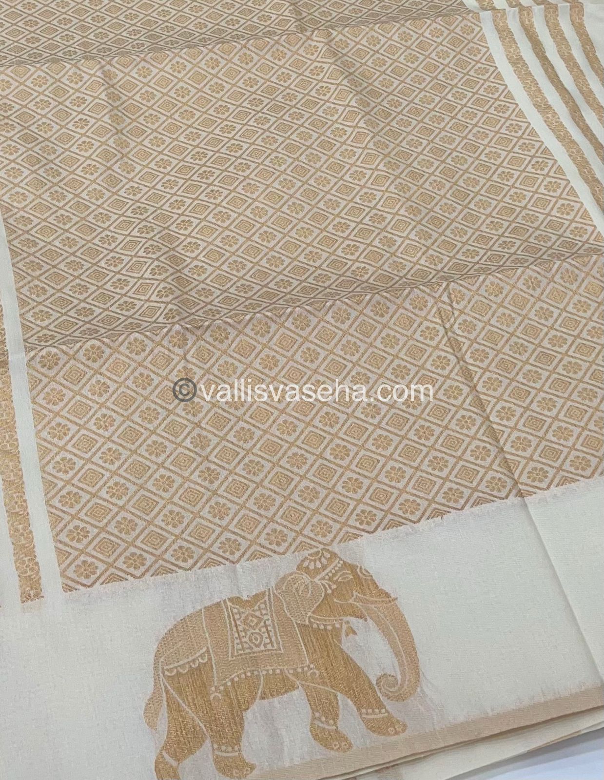 Stunning Mulberry Semi Silk sarees - All over small zari weaving butta and Beautiful self zari Elephant design border with grand Pallu and blouse .
