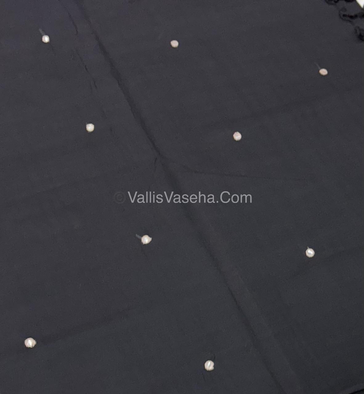 Poly Silk Mixed Cotton - Mirror Work Embroidery - Black with Cream - VVPCM001