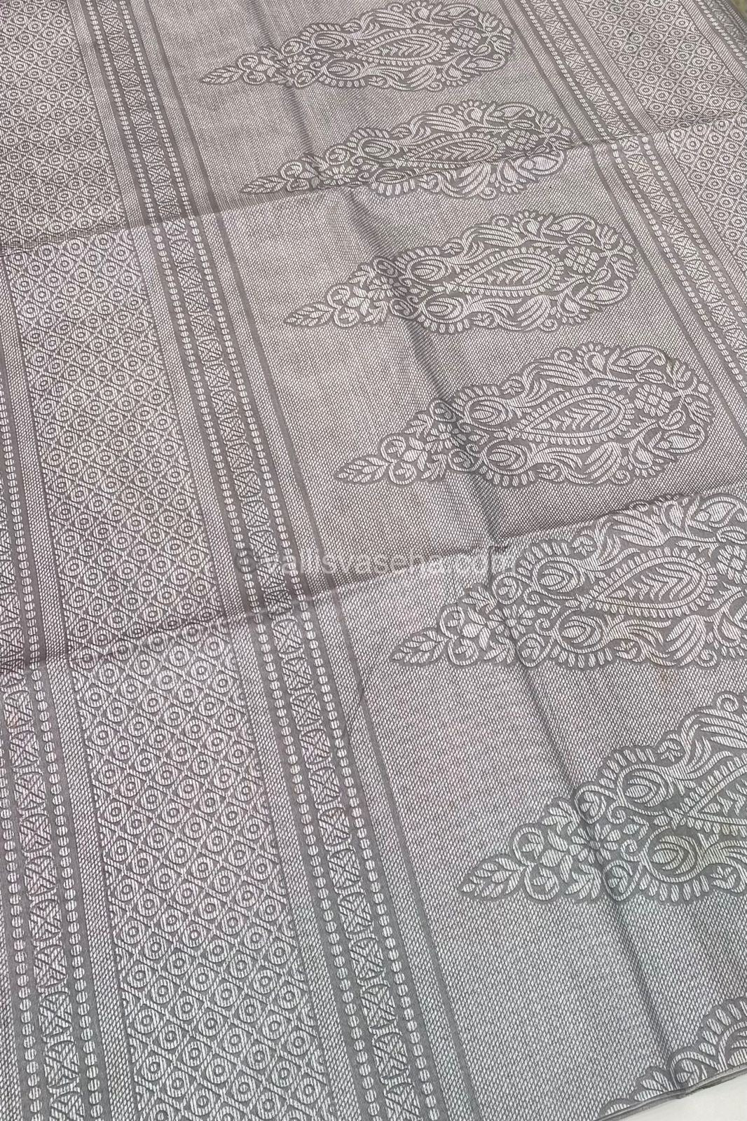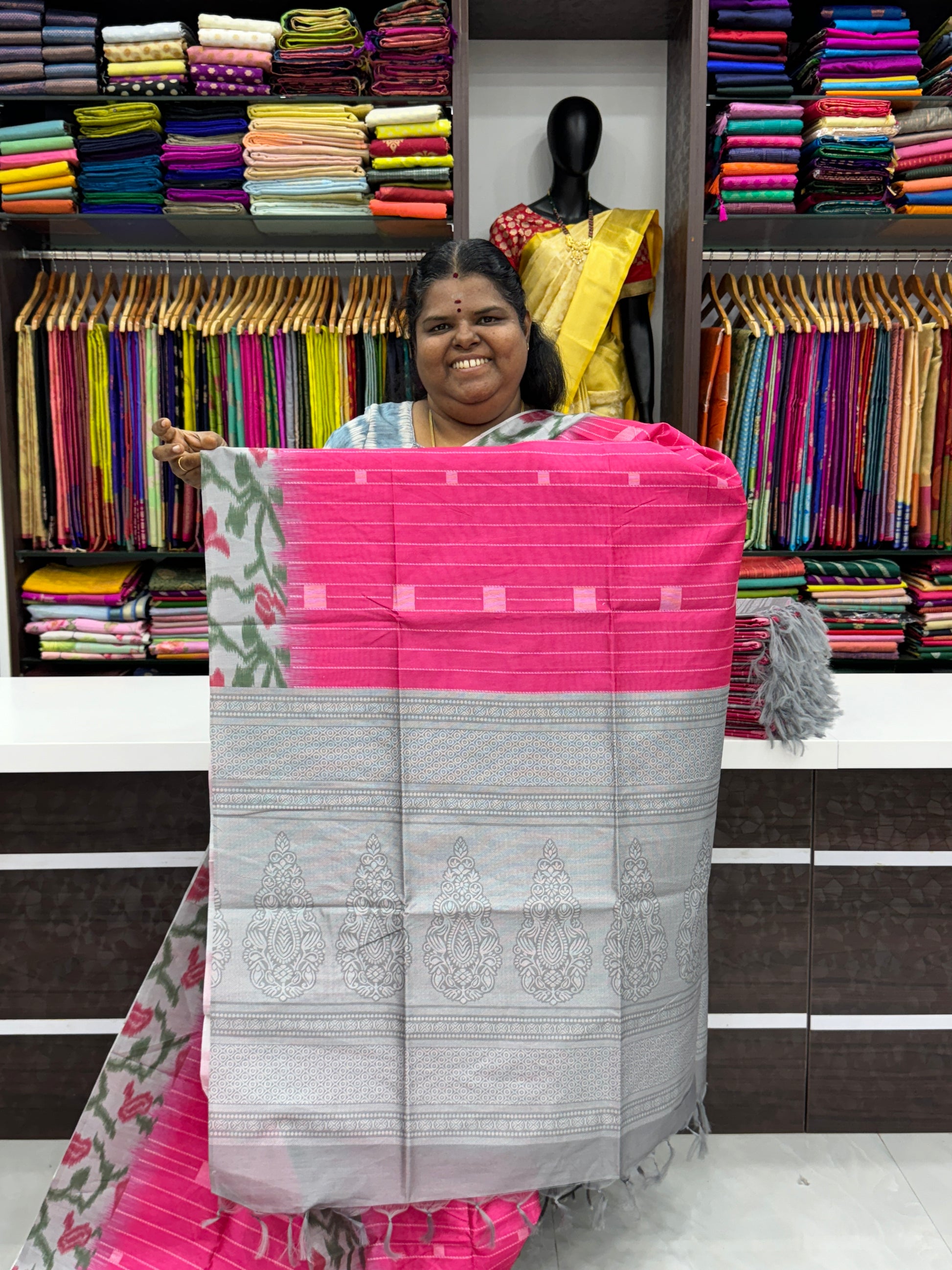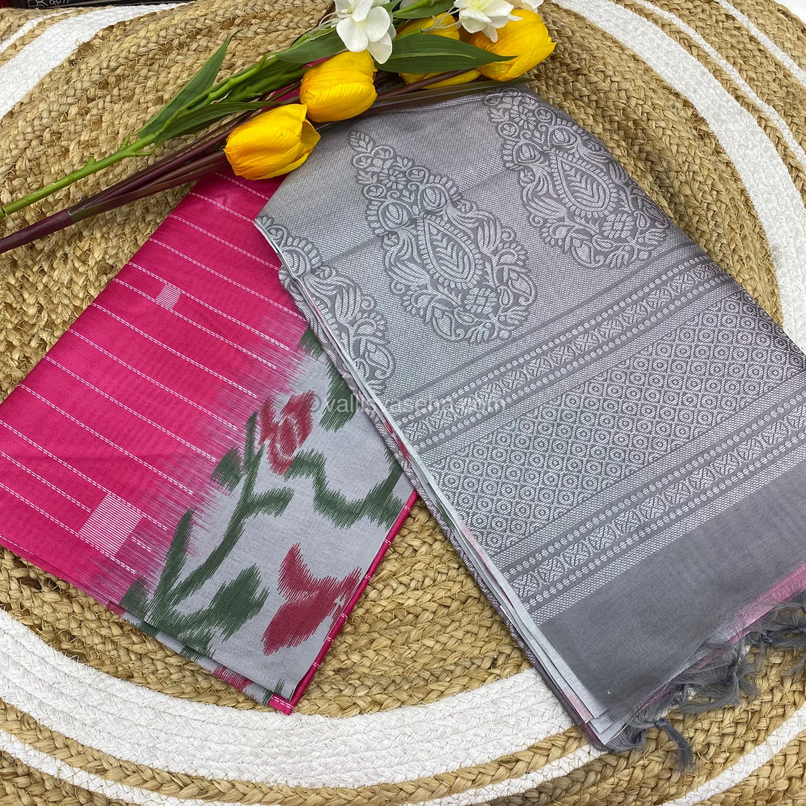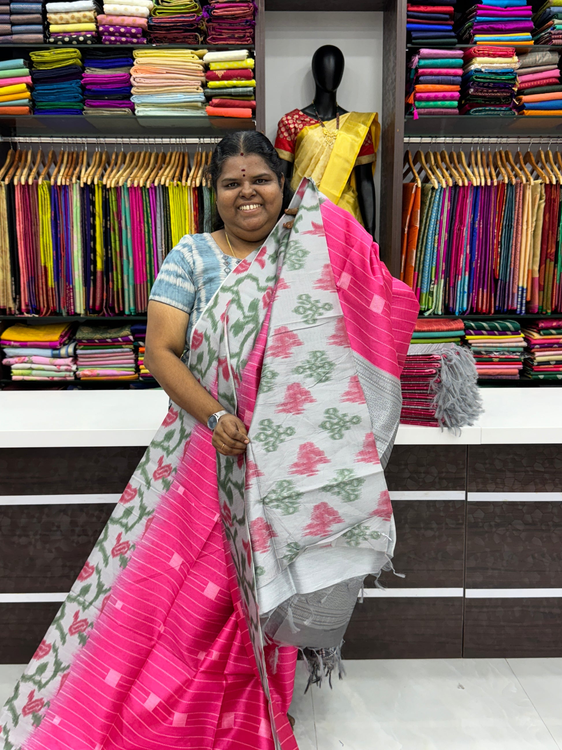 Semi Chappa Silk saree with contrast Pochampally border, Grand Pallu with tassels & Pochampally Printed Blouse.