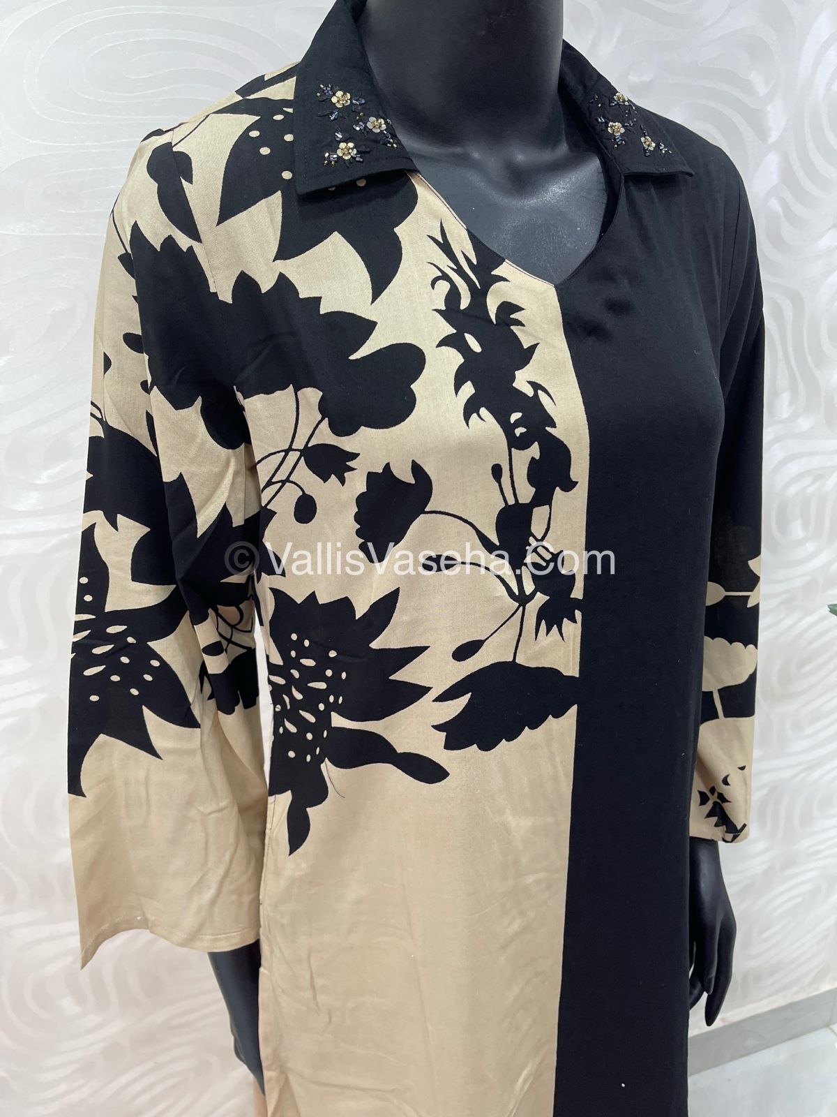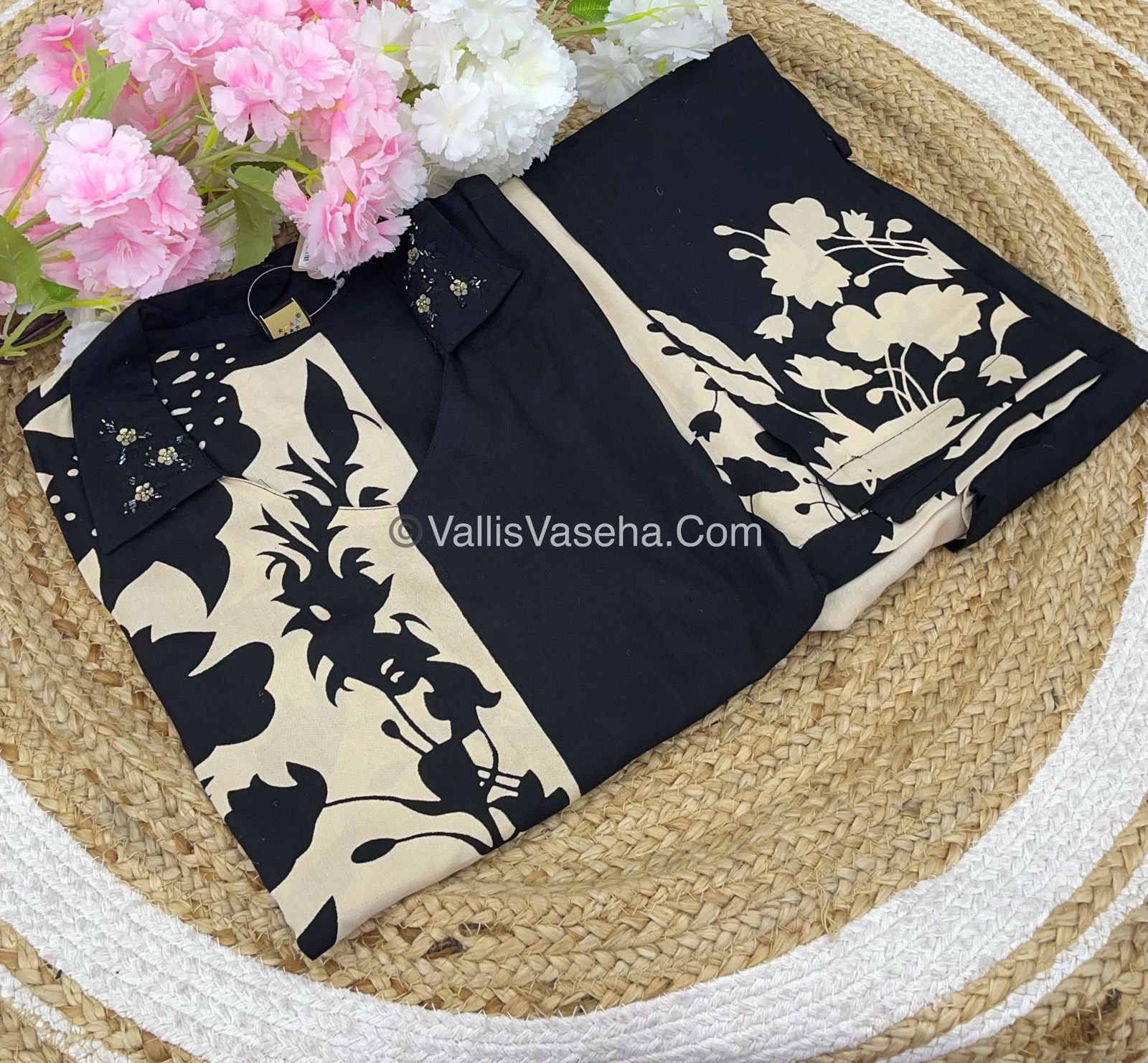 Premium Co-ord Sets- Mixed Cotton with V and Collar neck beads embroidery and all over embroidery with beautiful floral prints . Regular Wear / Office Wear