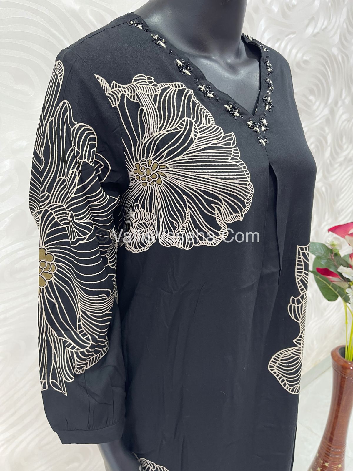 Premium Co-ord Sets- Mixed Cotton with V neck beads embroidery and all over embroidery with beautiful floral prints . Regular Wear / Office Wear