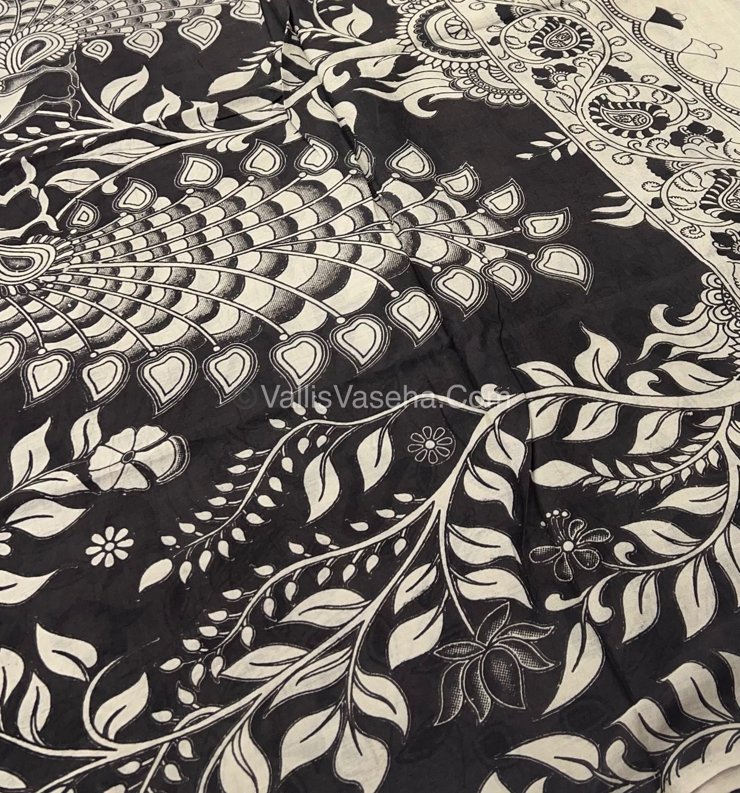 Pure Kalamkari Cotton saree with handblock printed design all over the saree , Pallu and Blouse.Soft and Smooth Texture.Comfortable wear for summer .