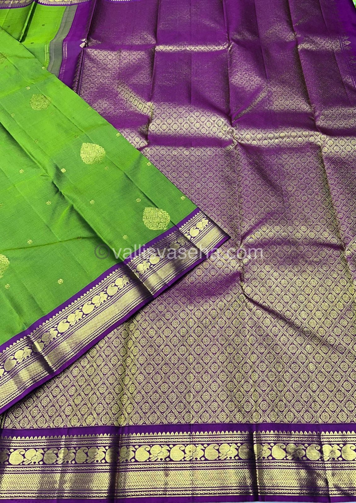Pure Kanchipuram Silk Saree - Green with Dark Purplish Pink Shade - VVPS009