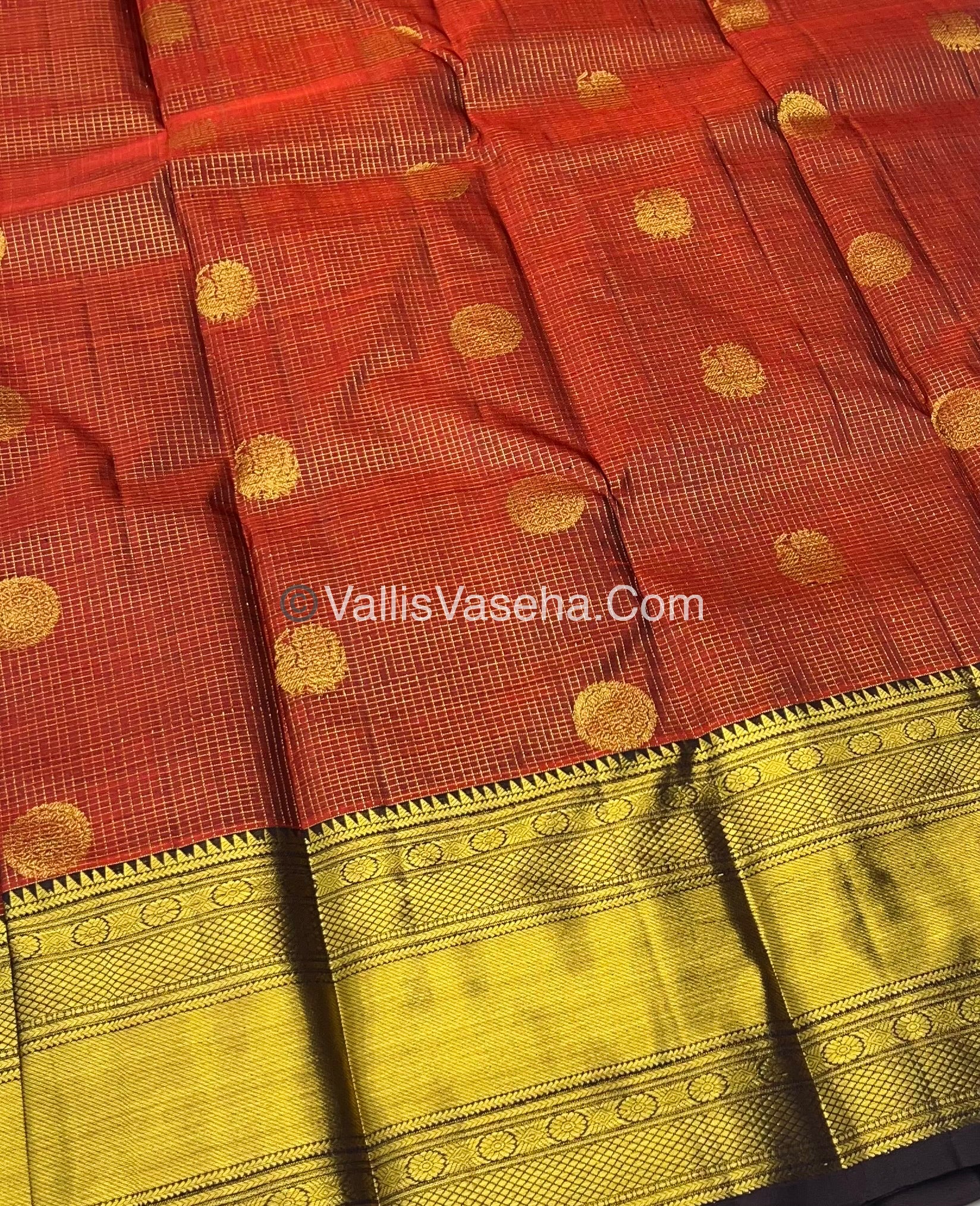 Pure Kanchipuram Silk Saree - Dark Rust Orange with Wine Brown Combo - VVPS012