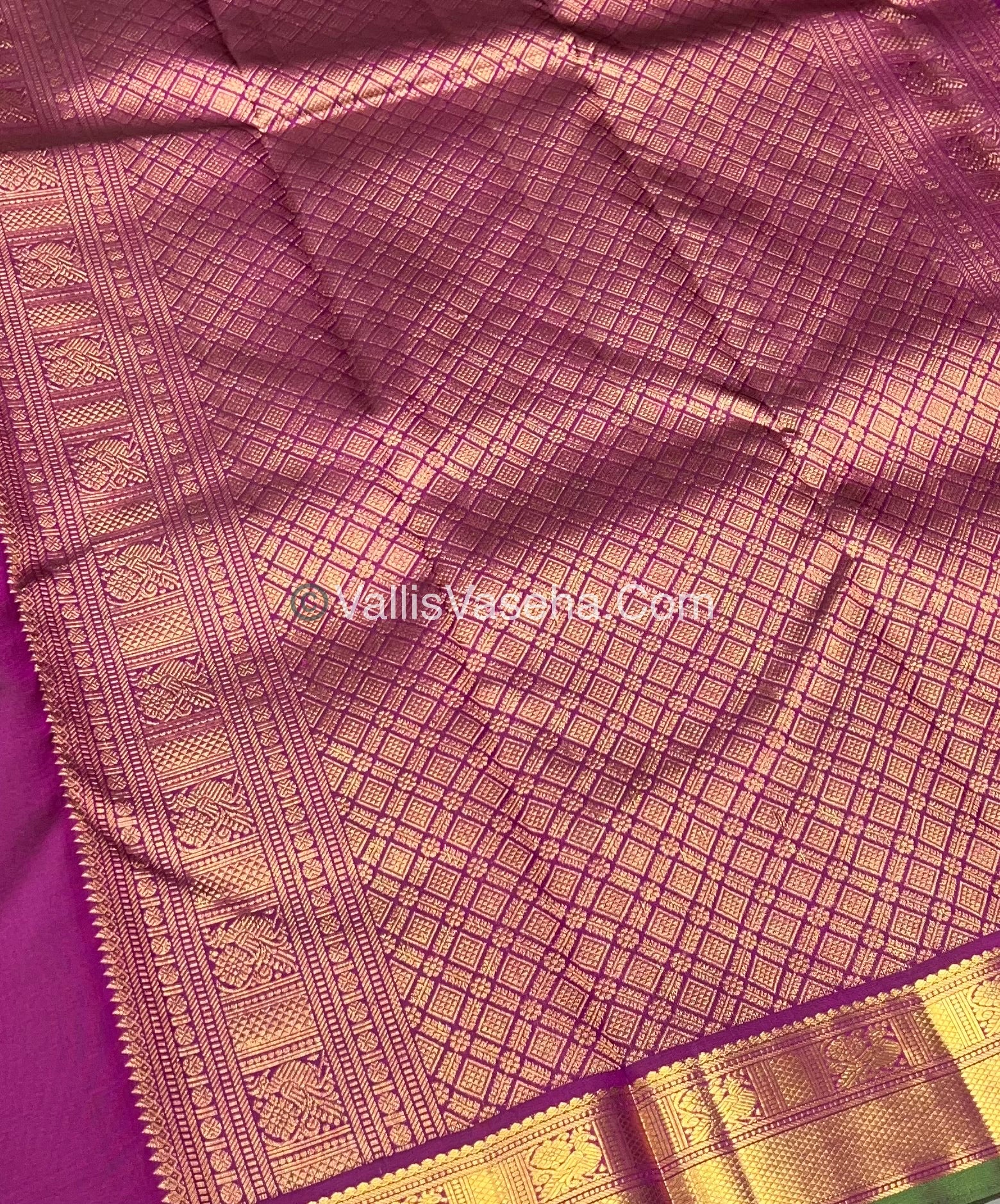 Pure Kanchipuram Silk Saree - Peach Gold & Purplish Pink Combo - VVPS014