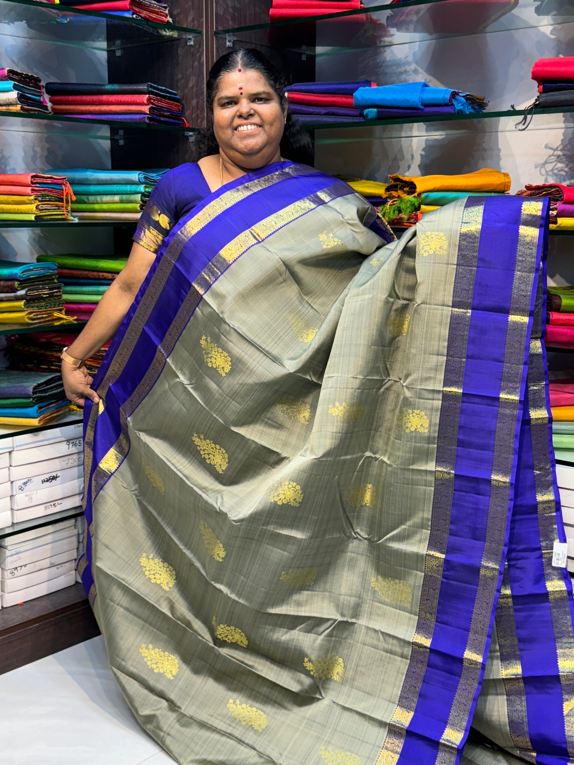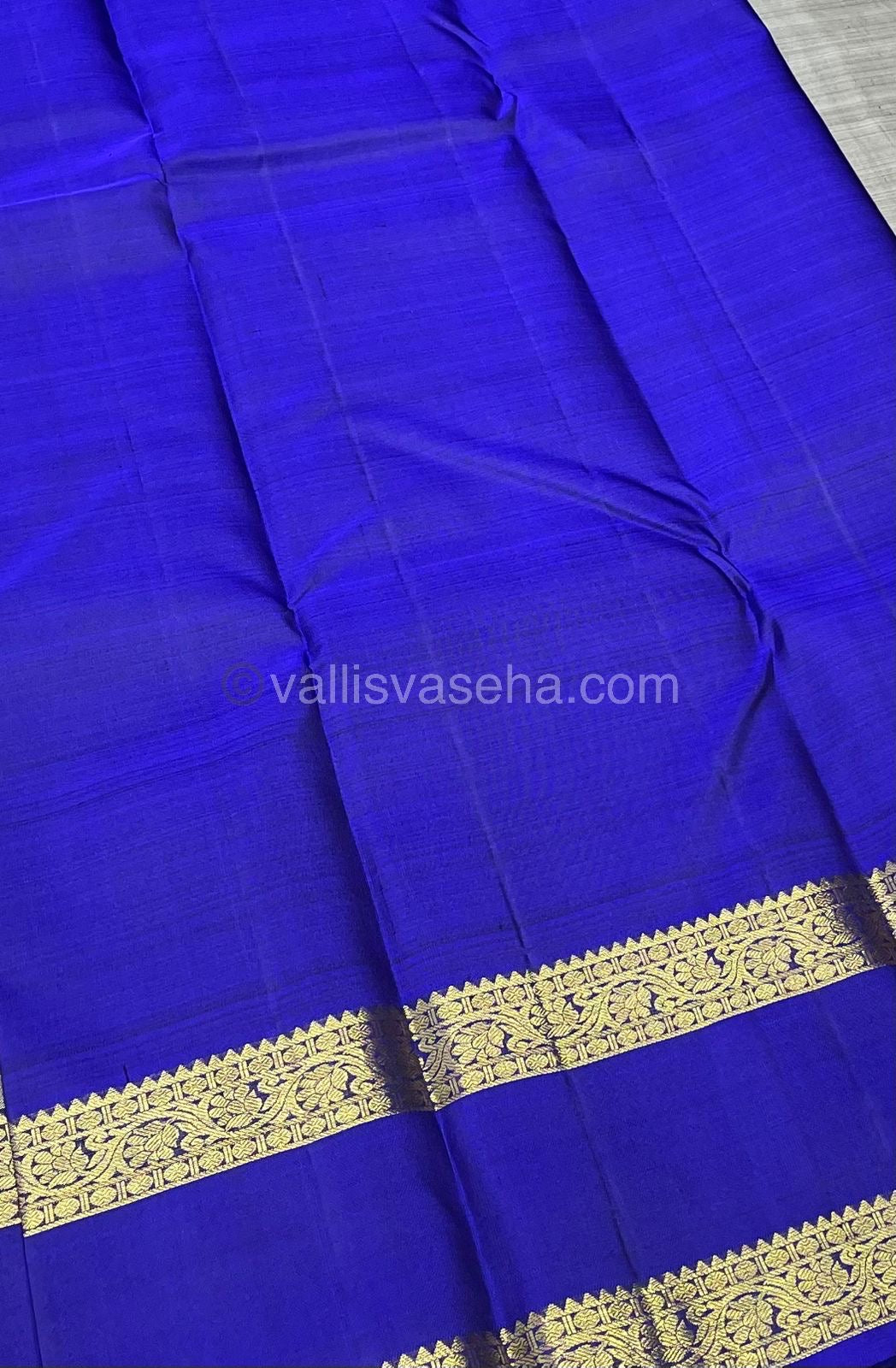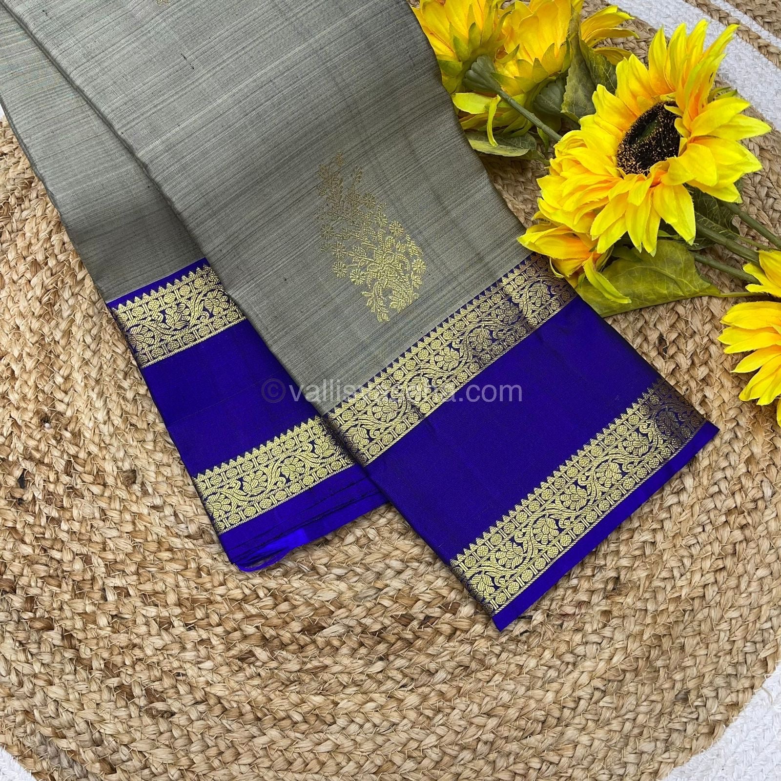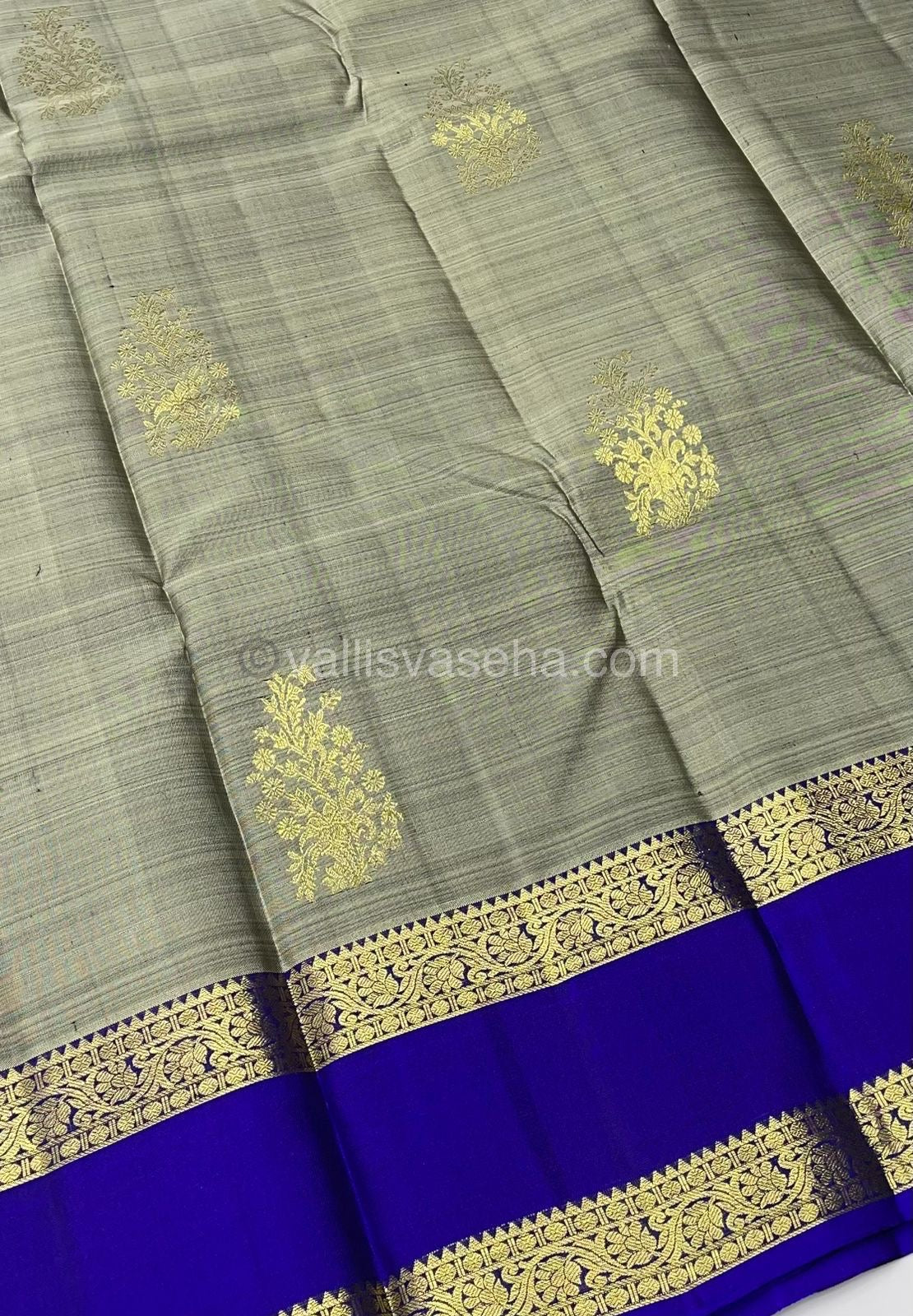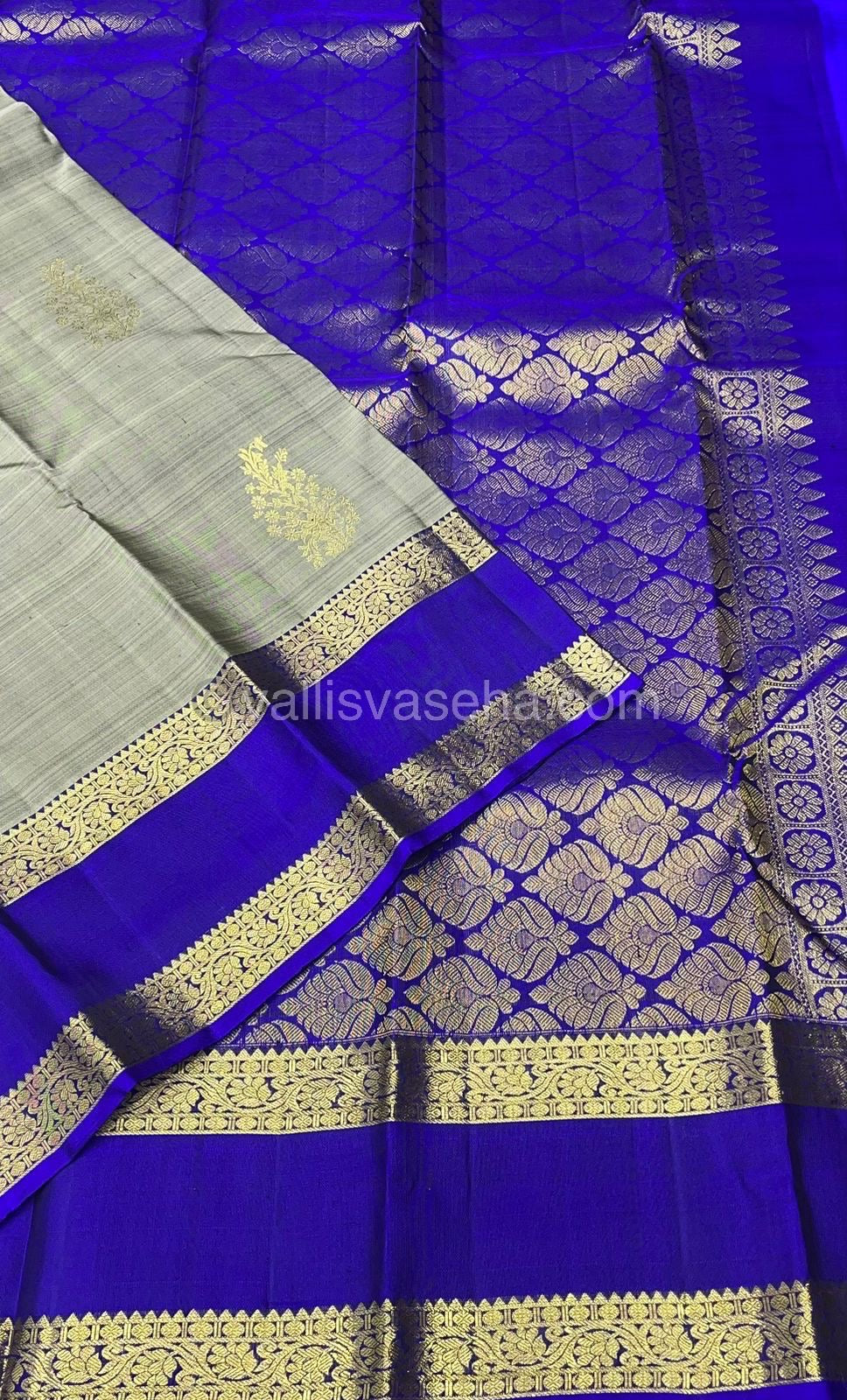 Pure Kanchipuram Silk Saree - Elegant Grey with Blue - Retta Petta Border - VVPS008