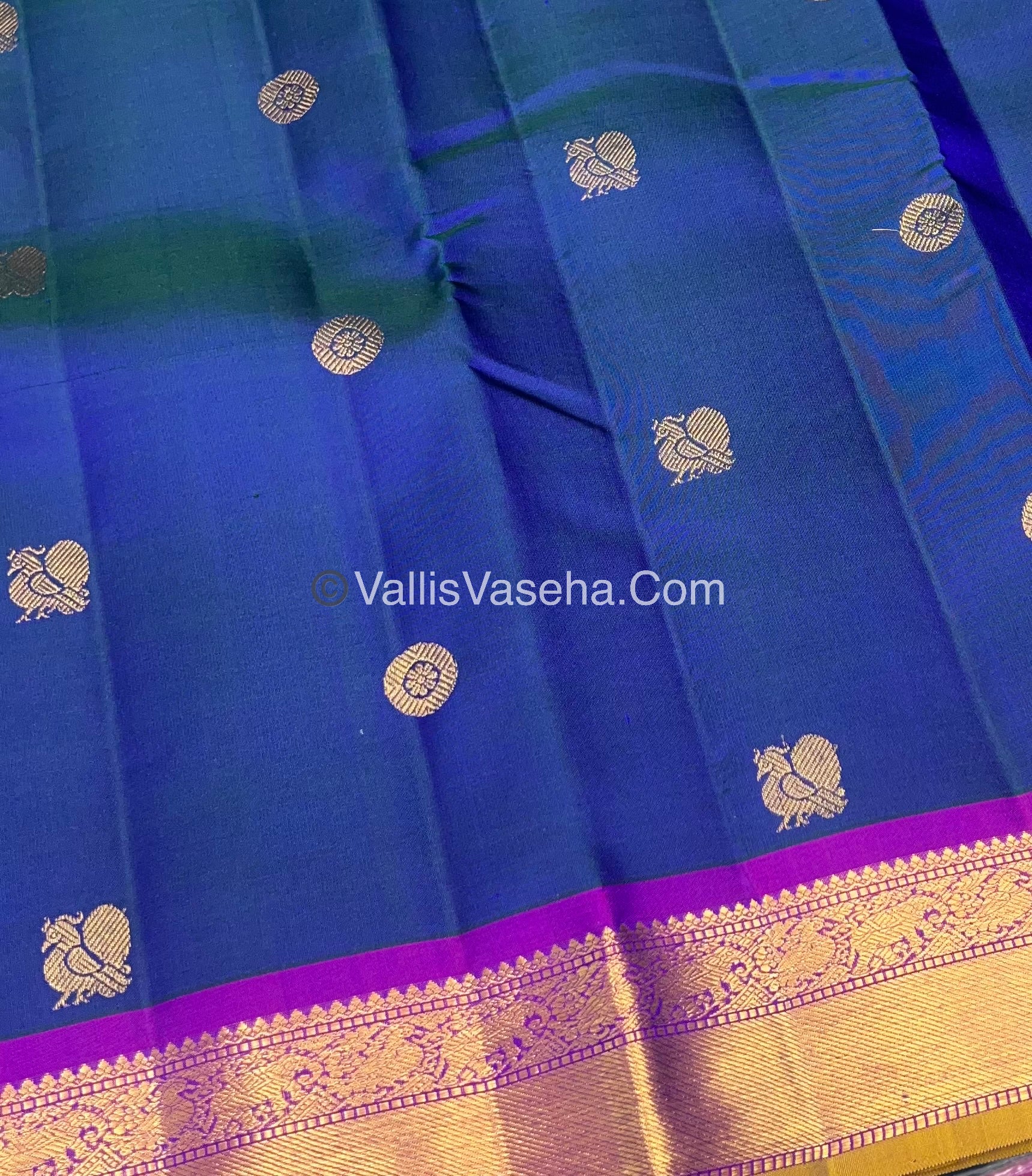 Pure Kanchipuram Silk Saree - Peacock Blue With Purple Shade - VVPS022