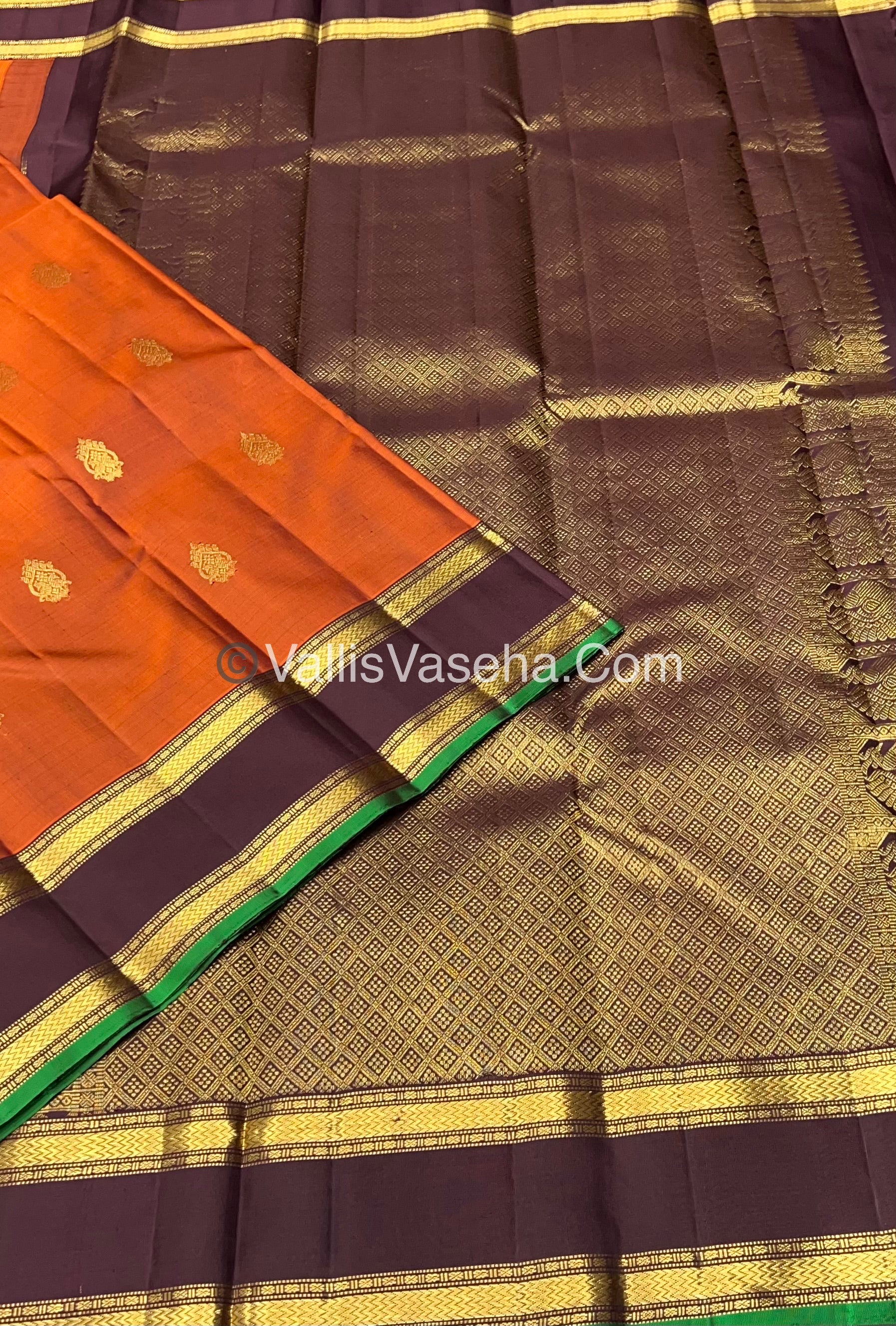 Pure Kanchipuram Silk Saree - Rust Orange & Brown Combo - VVPS014