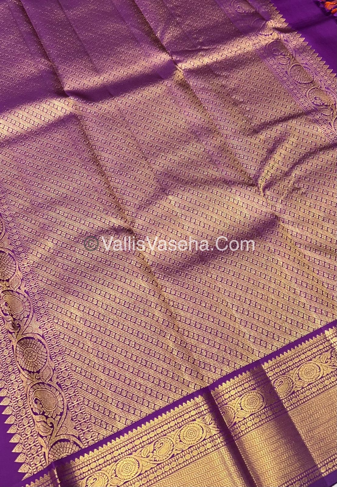 Pure Kanchipuram Silk Saree - Triple Tone Peachish Rust & Purple Combo - VVPS014