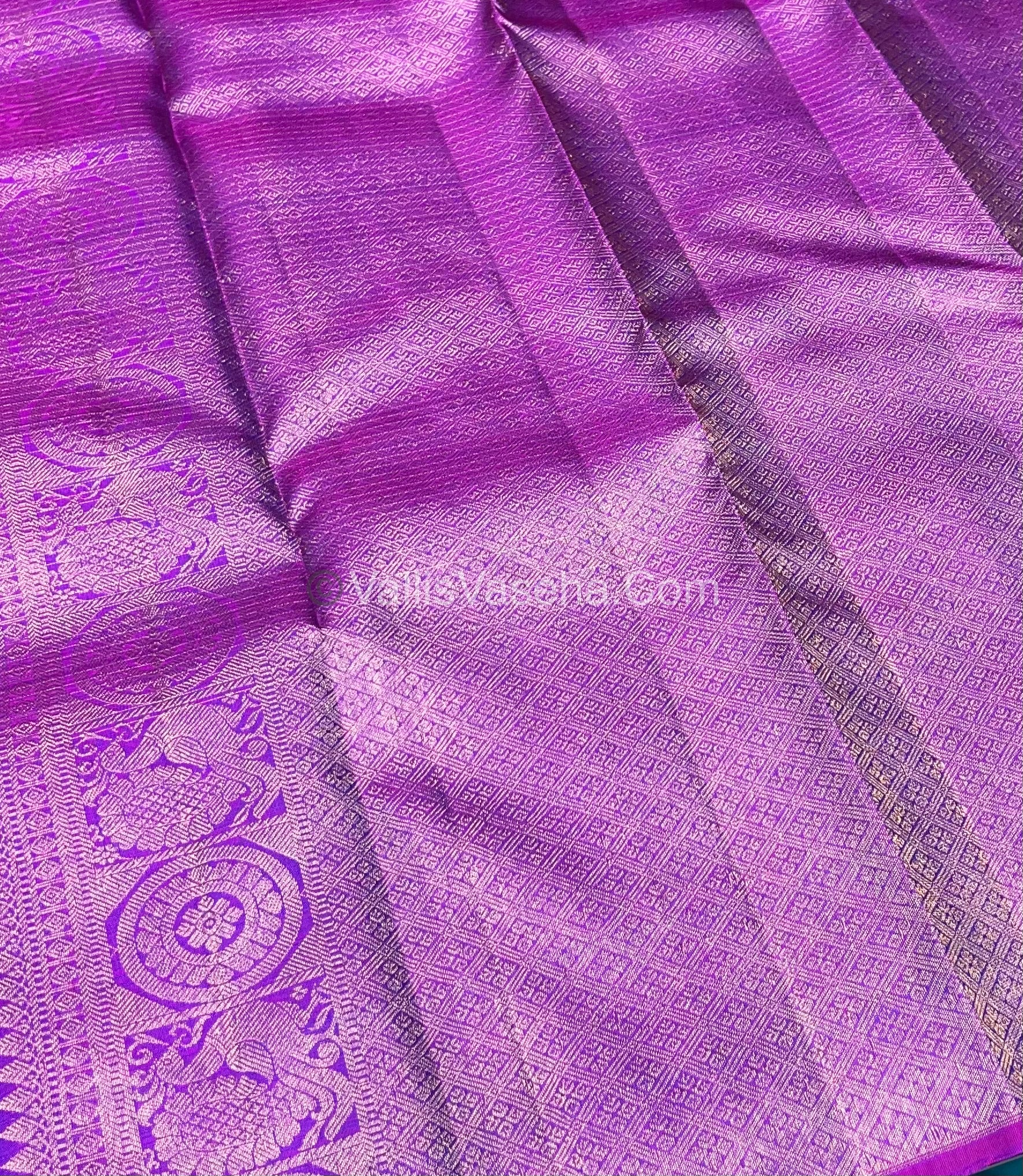 Pure Kanchipuram Silk Saree - Dual Tone Peacock Blue & Purple Shade - VVPS024