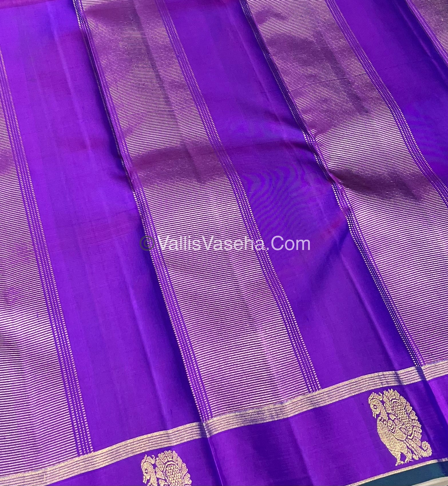 Pure Kanchipuram Silk Saree - Peacock Blue With Purple Shade - VVPS022