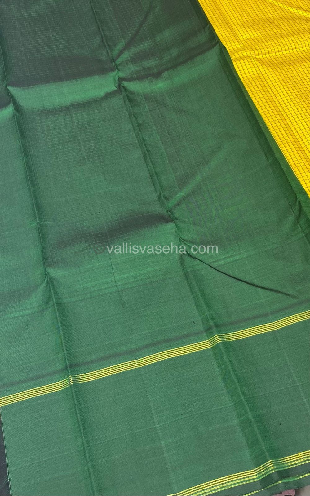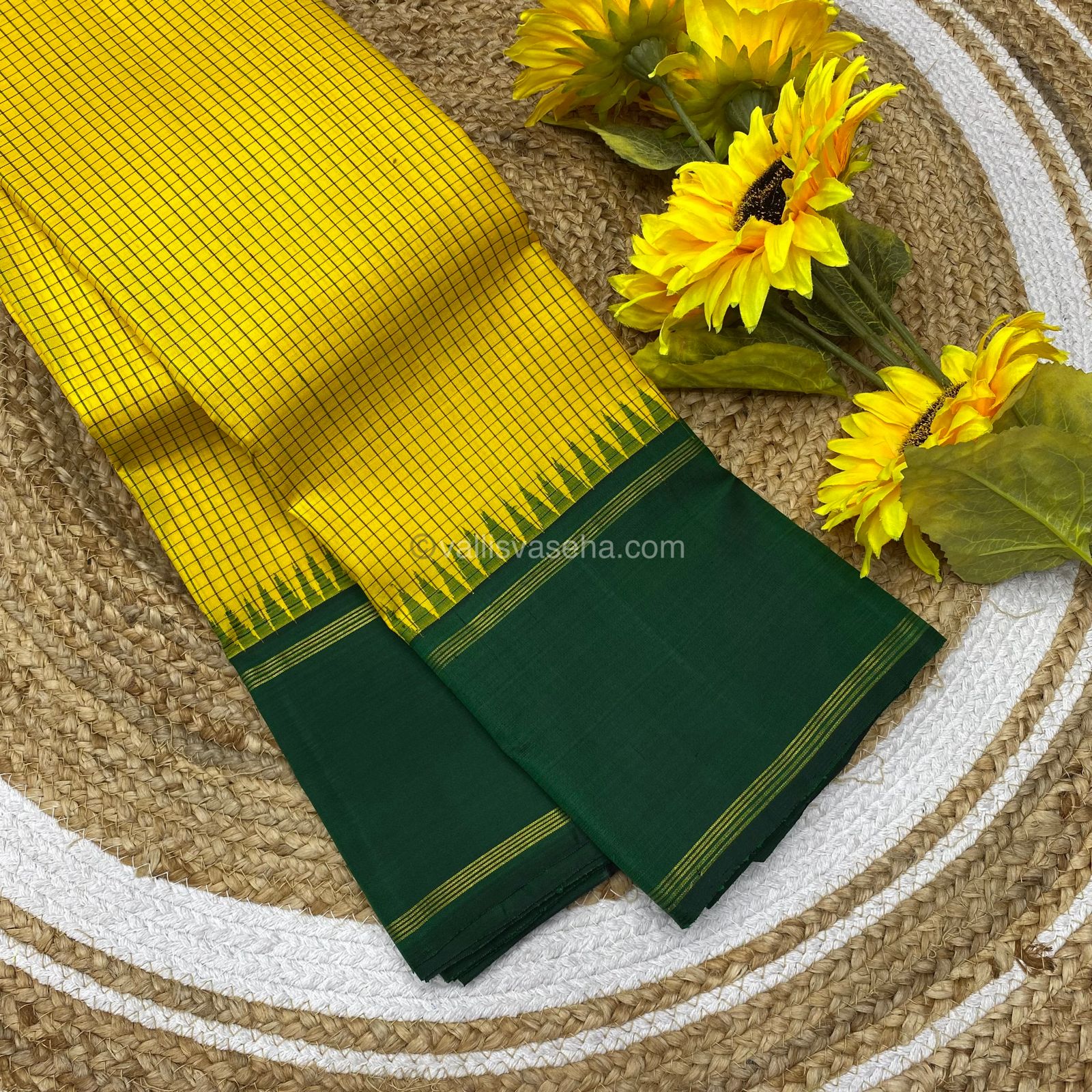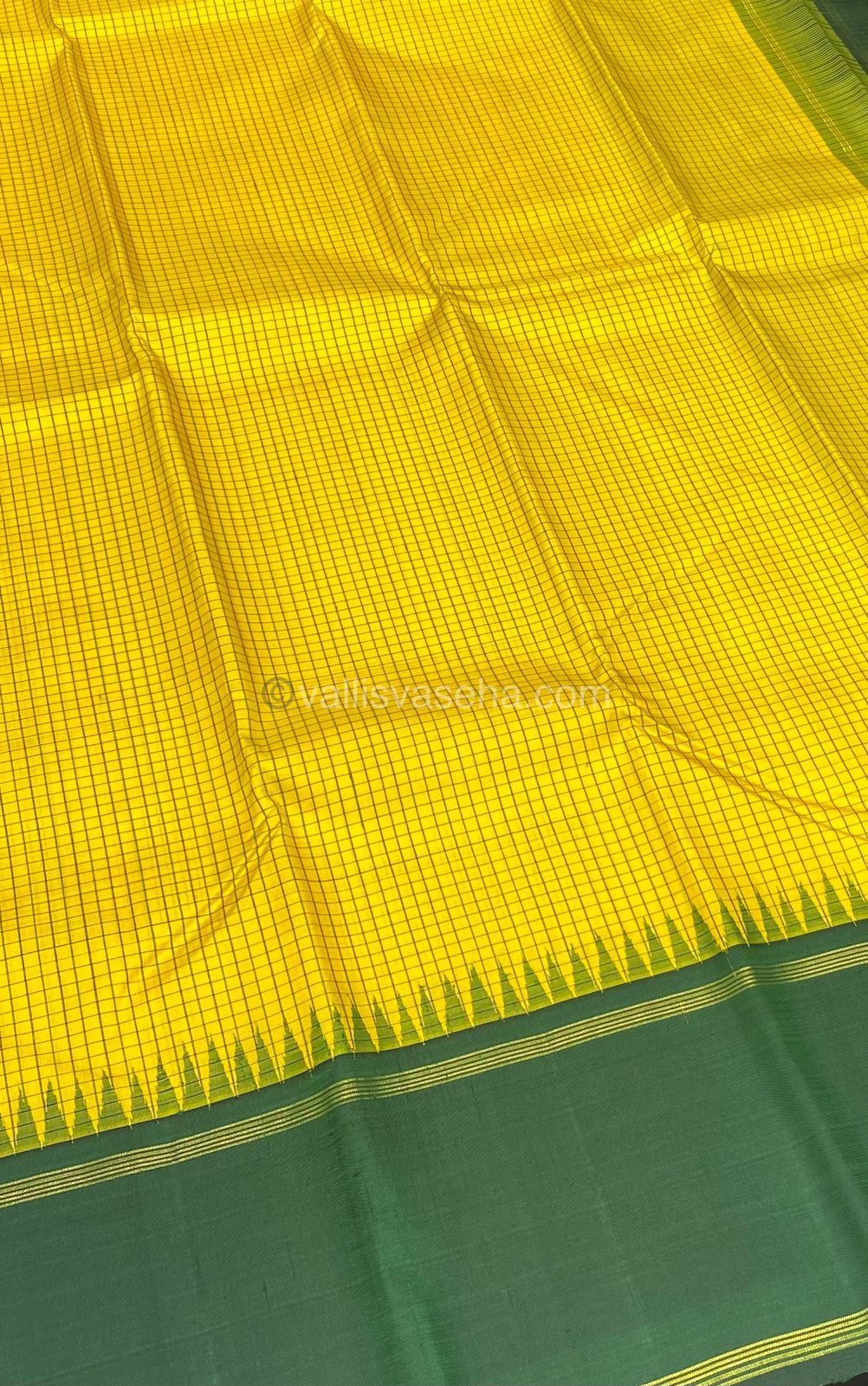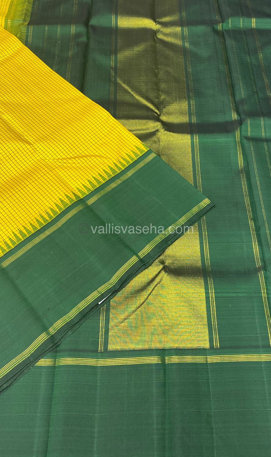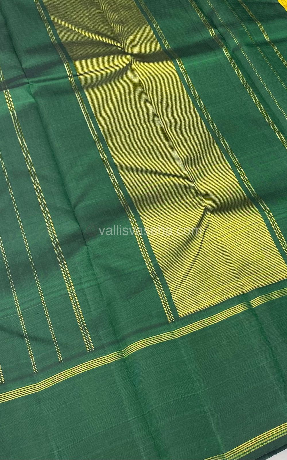 Pure Kanchipuram Silk Saree - Lovely Yellow and Green - Thalampoo - Retta Petta Border - VVPS006