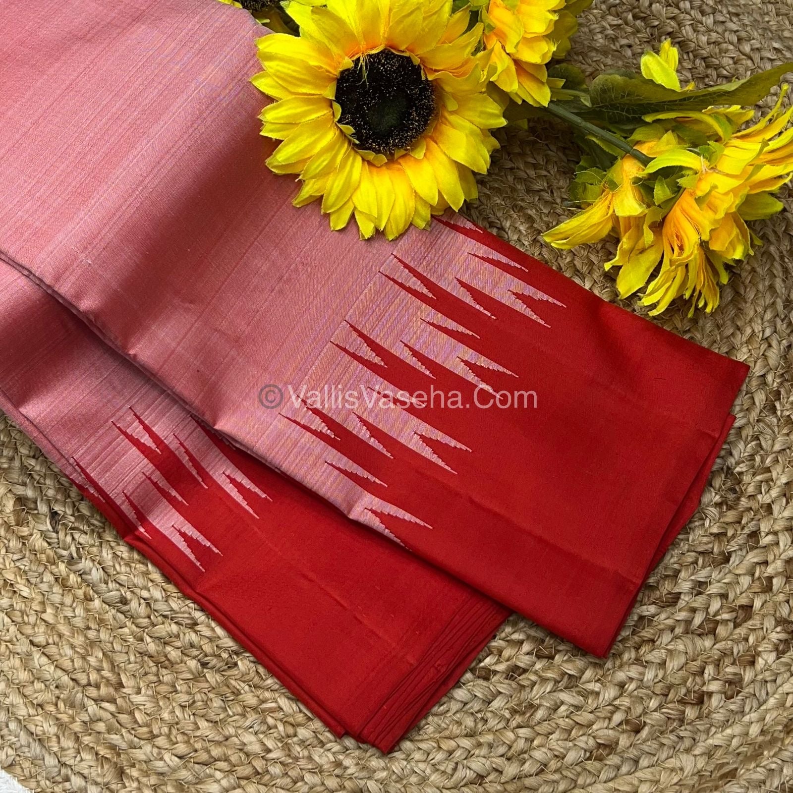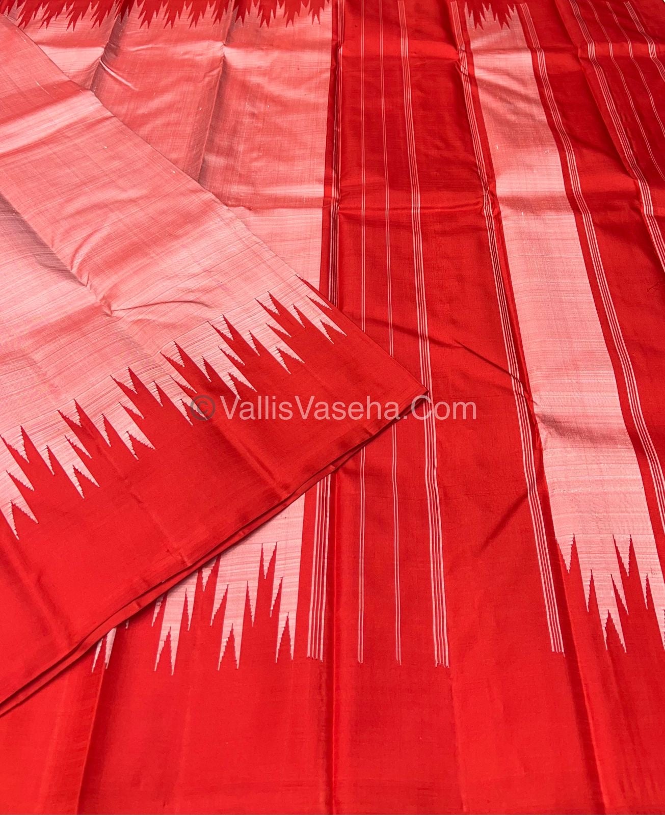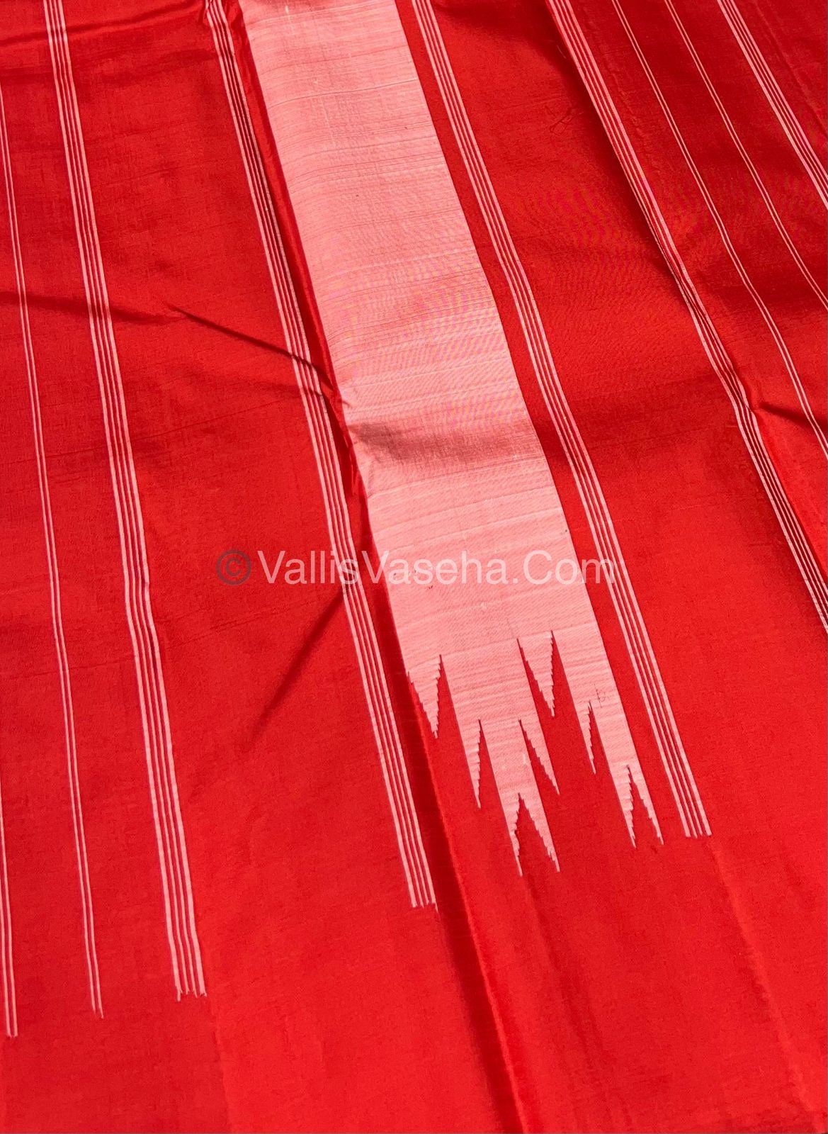 Pure Kanchipuram Silk Saree. Thalampoo Saree - Temple design woven borders .