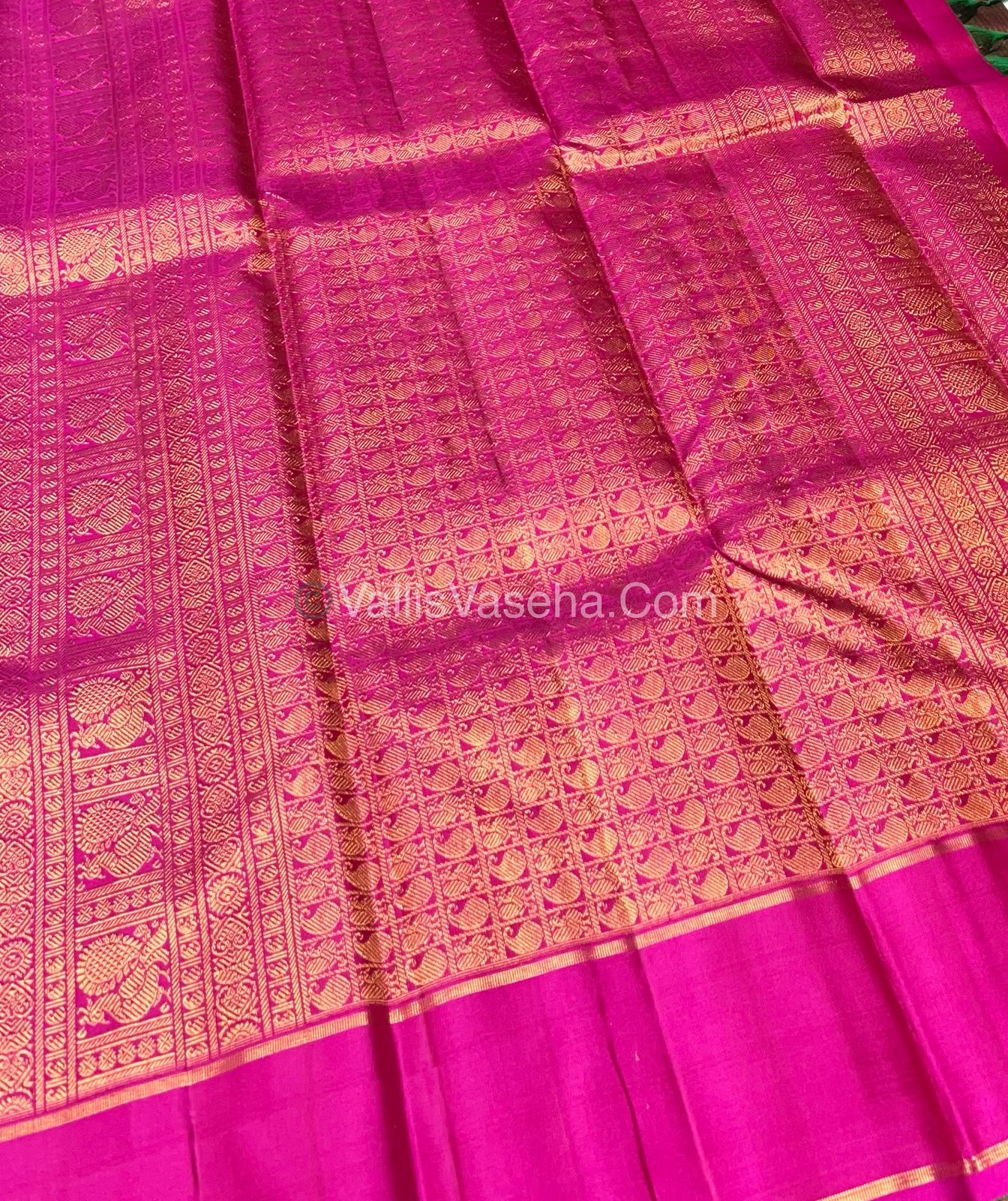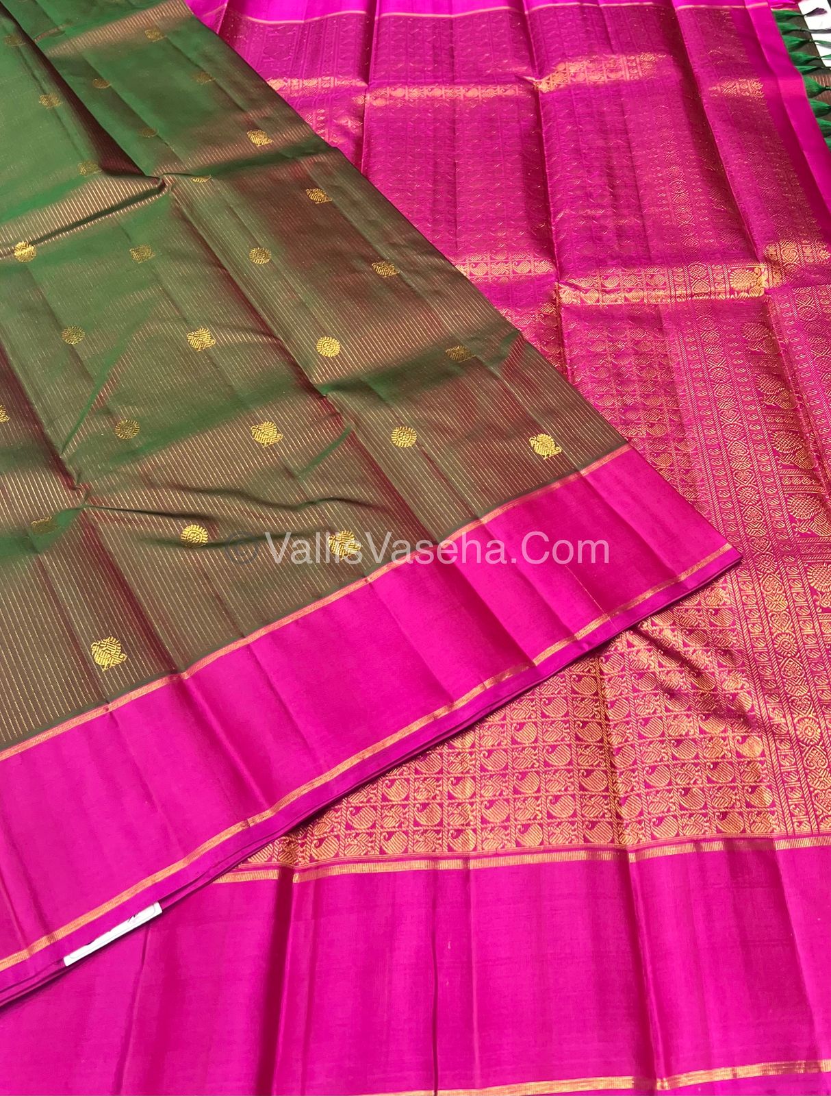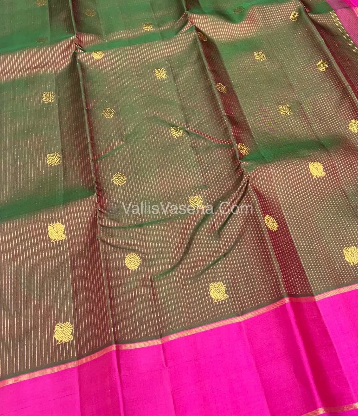 Pure Kanchipuram Silk Saree - Vaira Voosi - Manthulir Green with Pink Combo - VVPS011