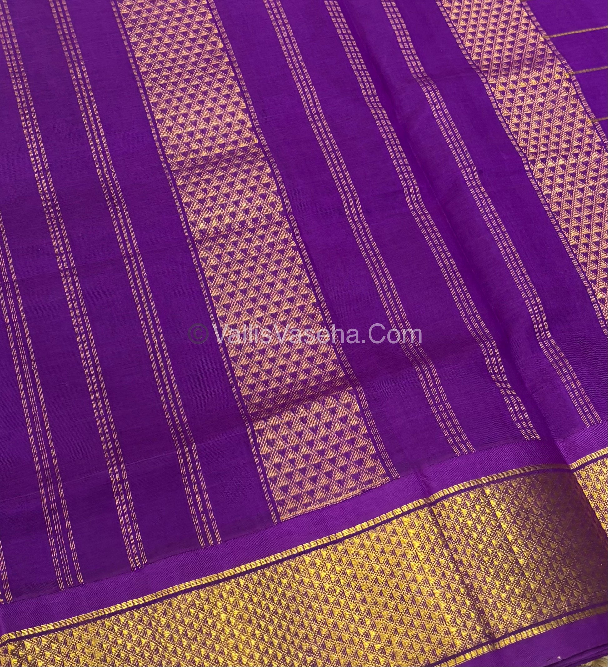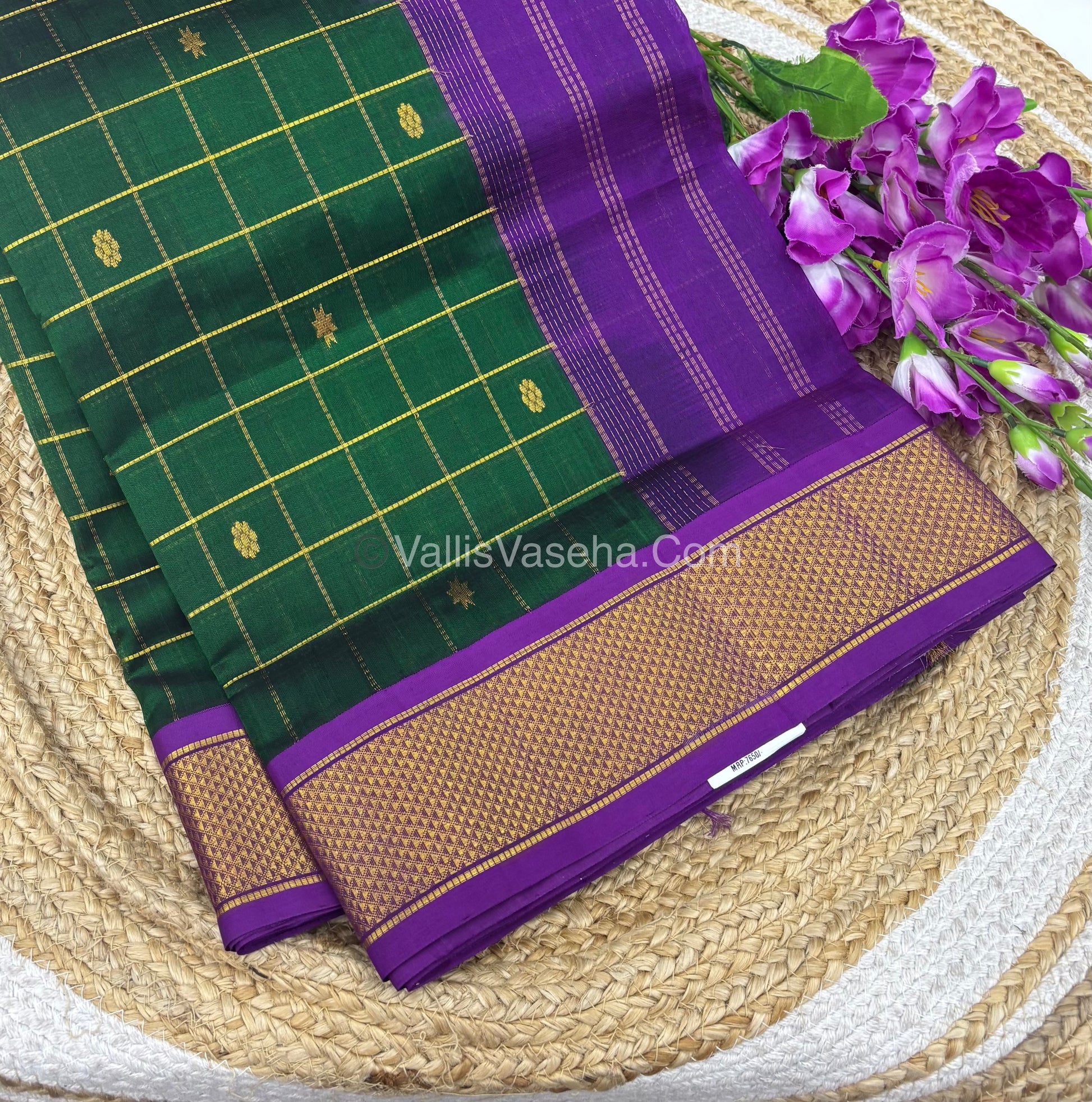Pure Korvai Silk Cotton - Checks Pattern - Green with Purple Shade - VVKSC015