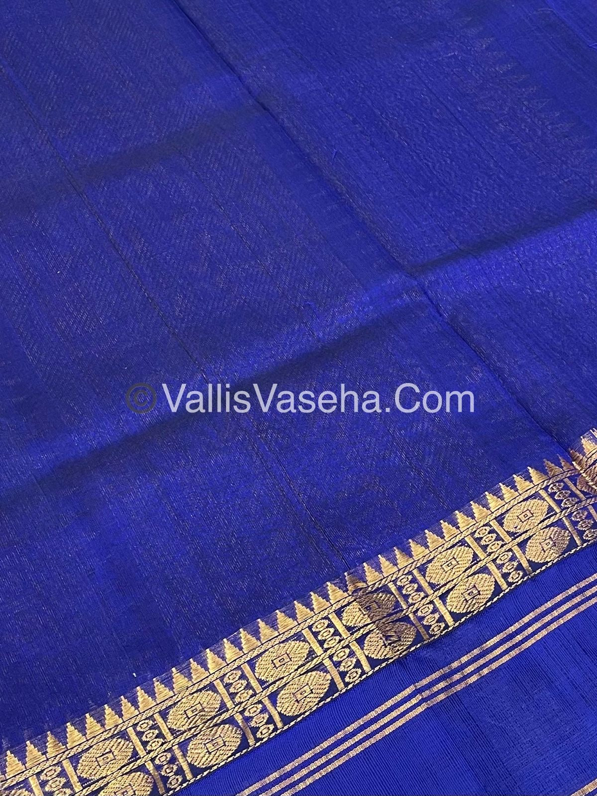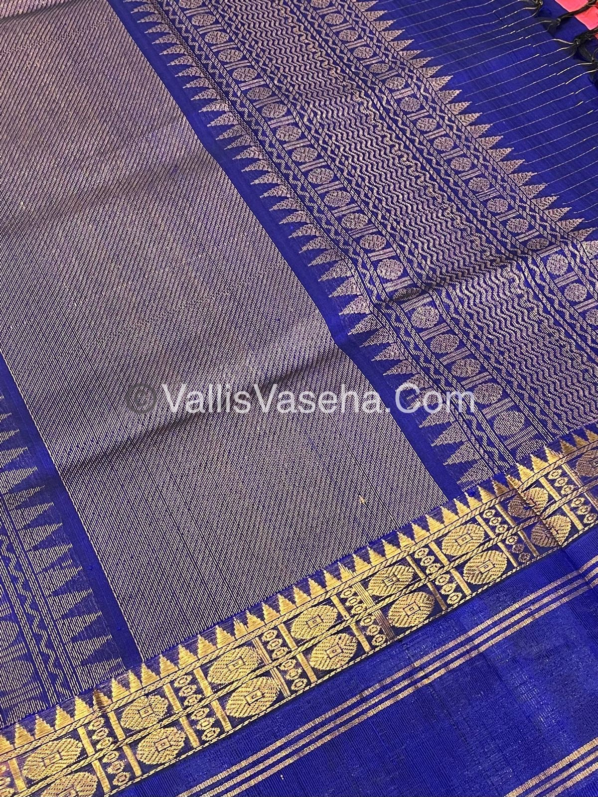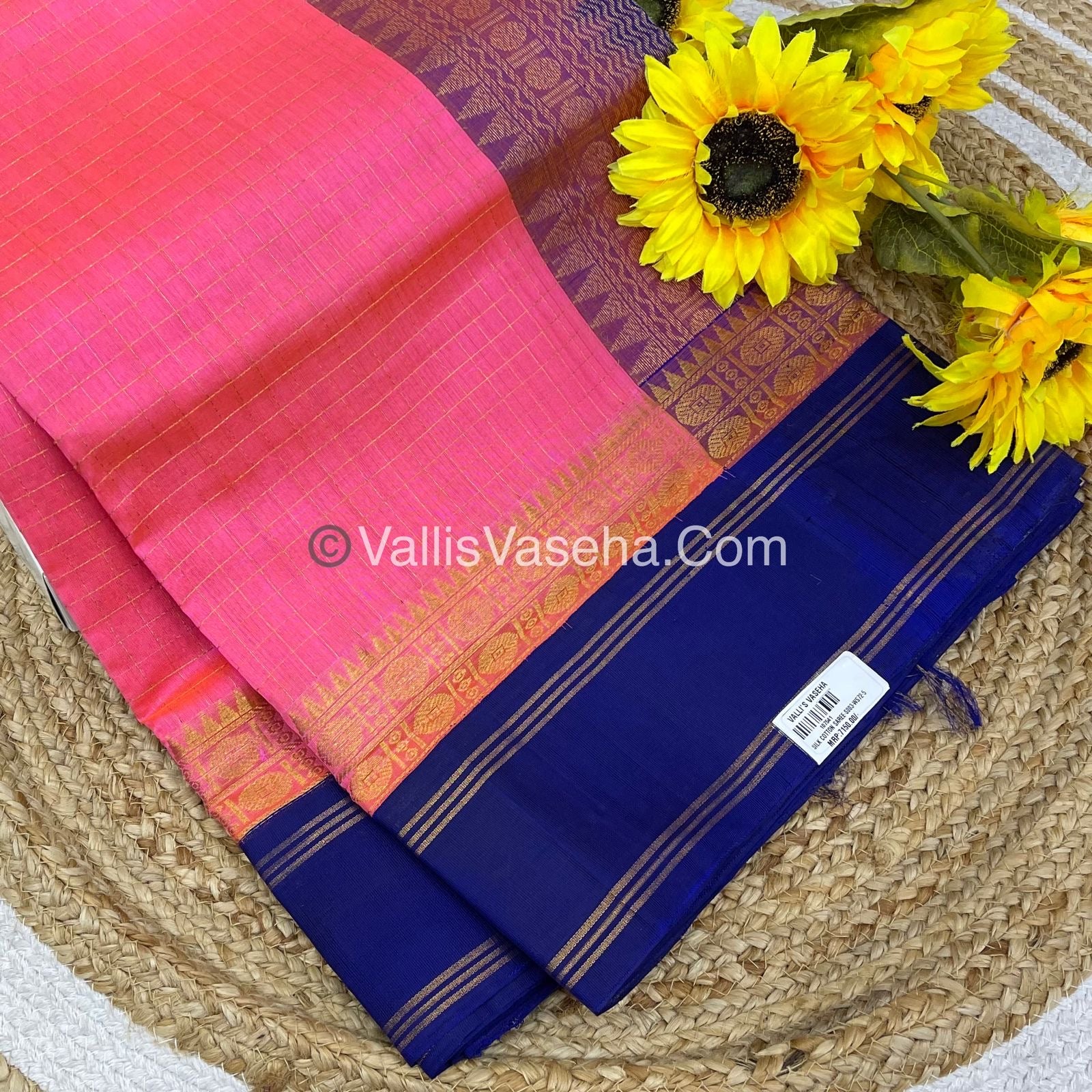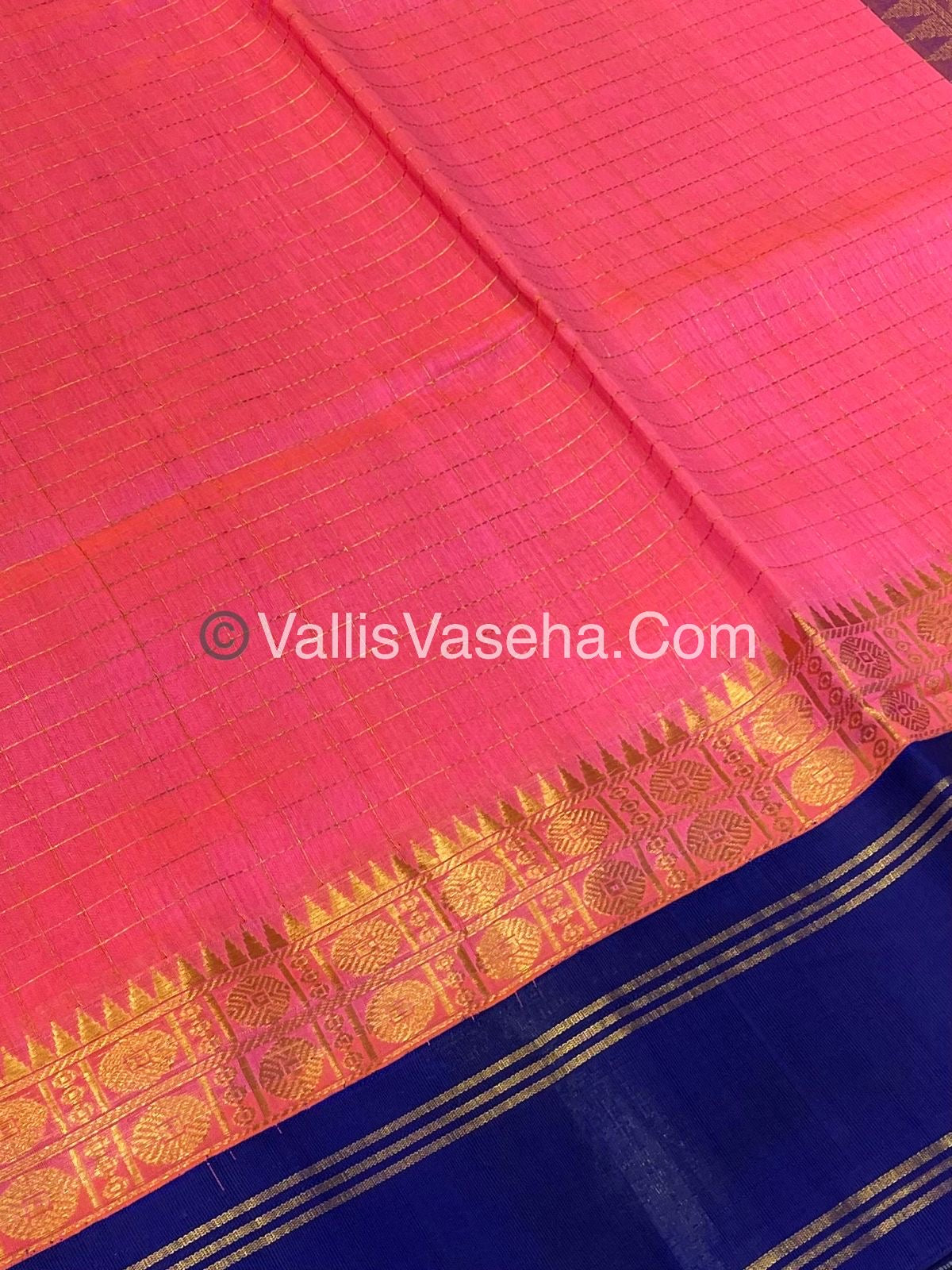 Pure Korvai Silk Cotton - Retta Petta Border - Pink with Blue Combo - VVKSC010