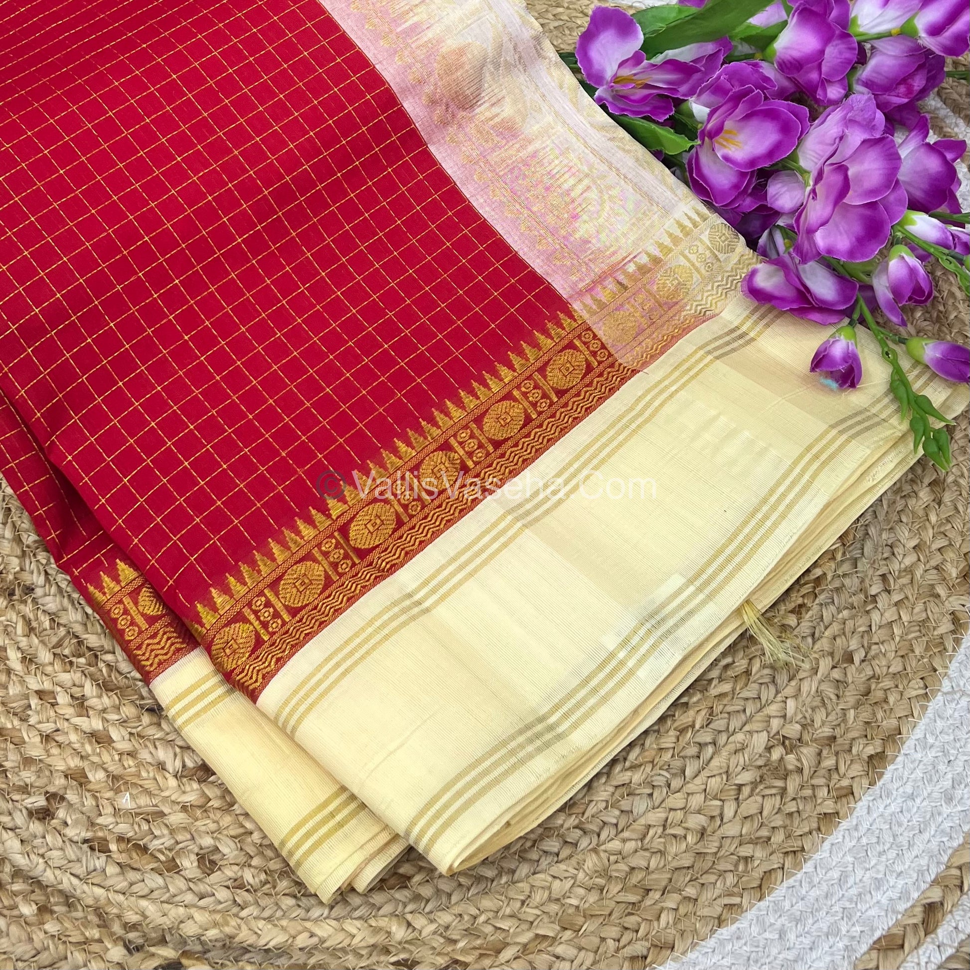 Pure Korvai Silk Cotton - Retta Petta Border - Red with Half White( Light Cream) Combo - VVKSC010