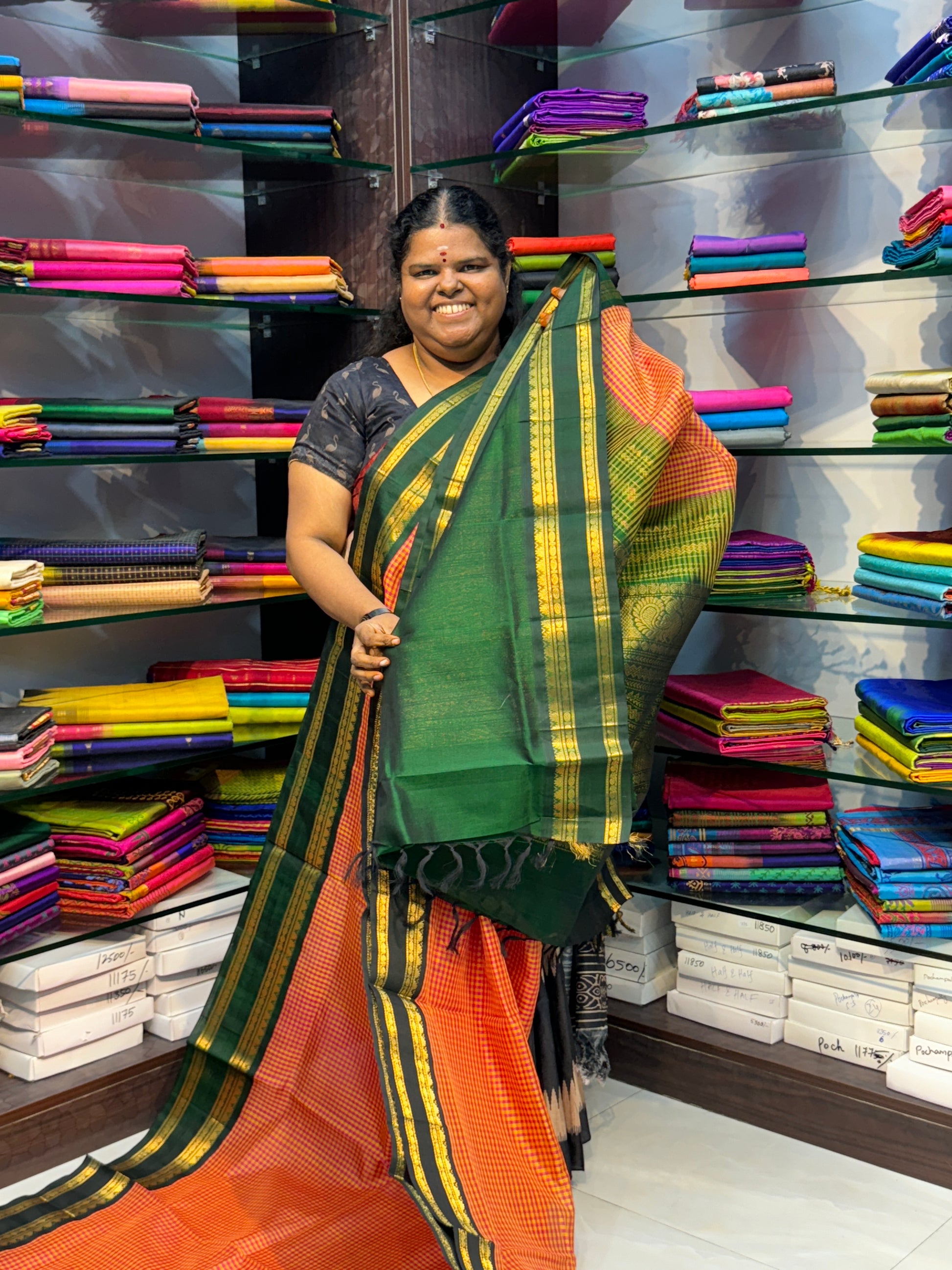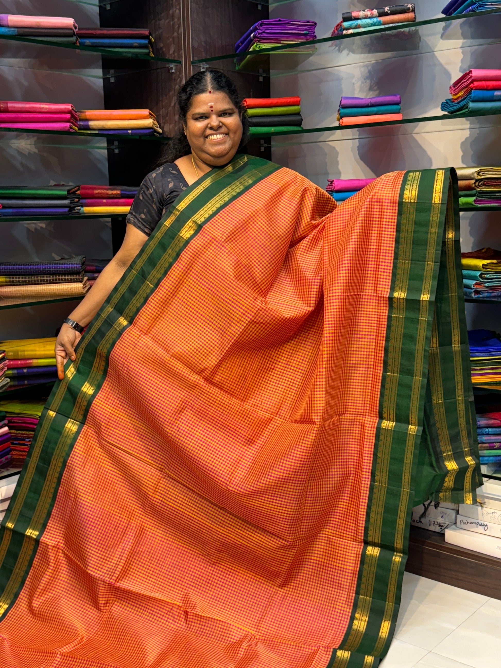 Pure Korvai Silk cotton sarees with Retta Petta border with 60% silk thread and 40% cotton thread … all over Podi kattam ( small checks in black and white combo )