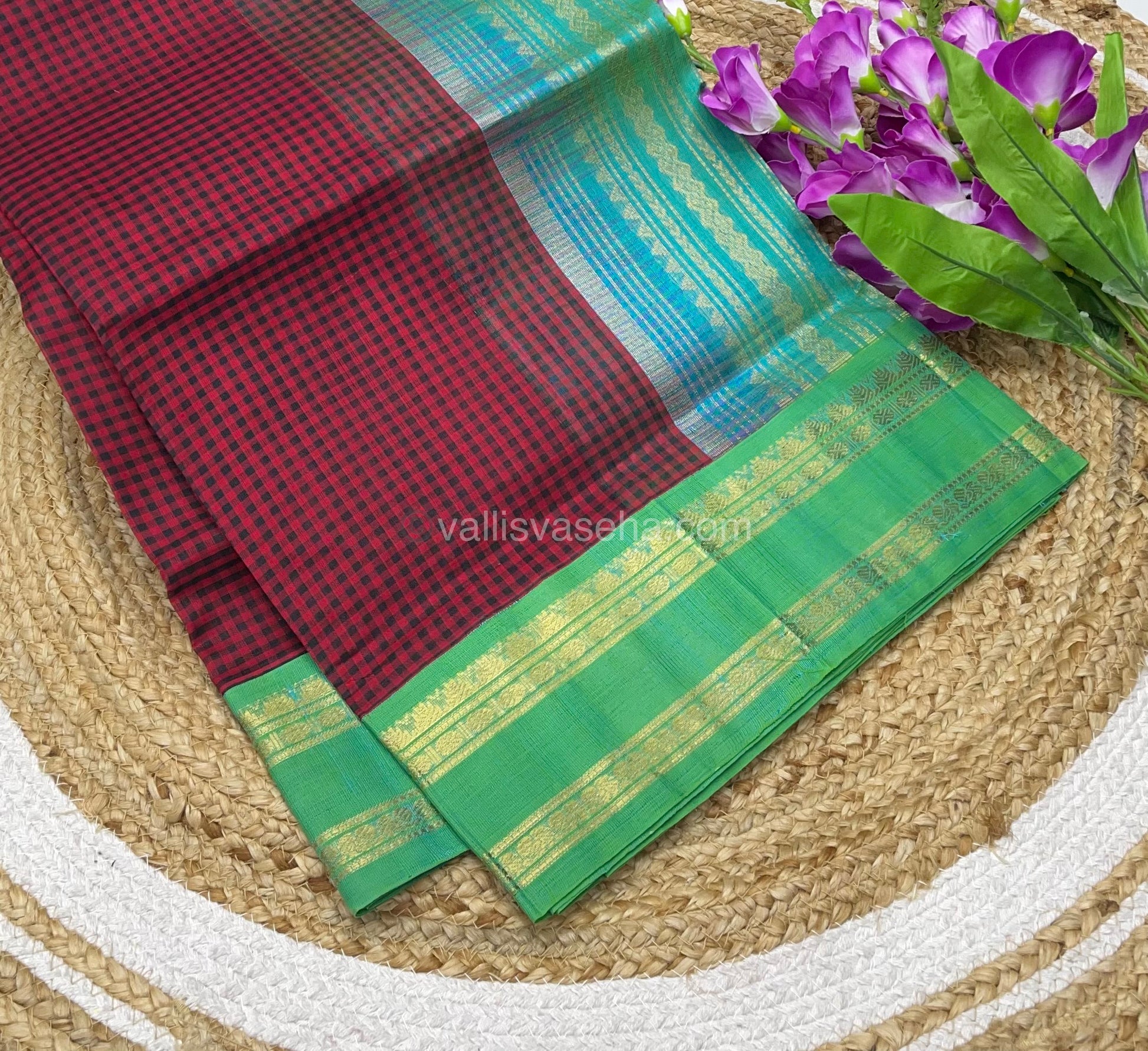 Pure Korvai Silk Cotton - Podi Kattam - Merun & Black with Teal Green - Retta Petta Border - VVKSC003