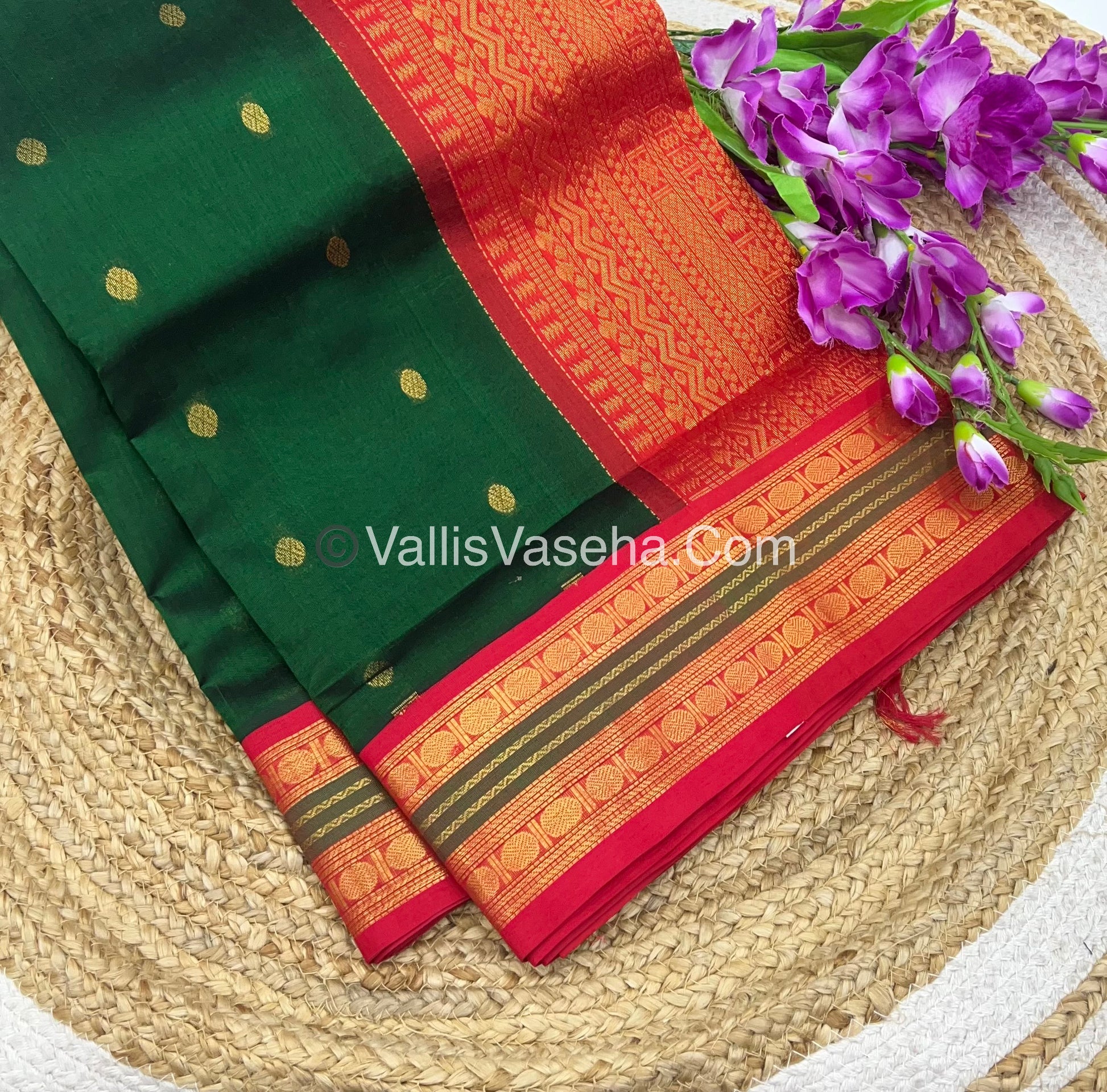 Pure Korvai Silk Cotton Saree - Green with Red - VVKSC004