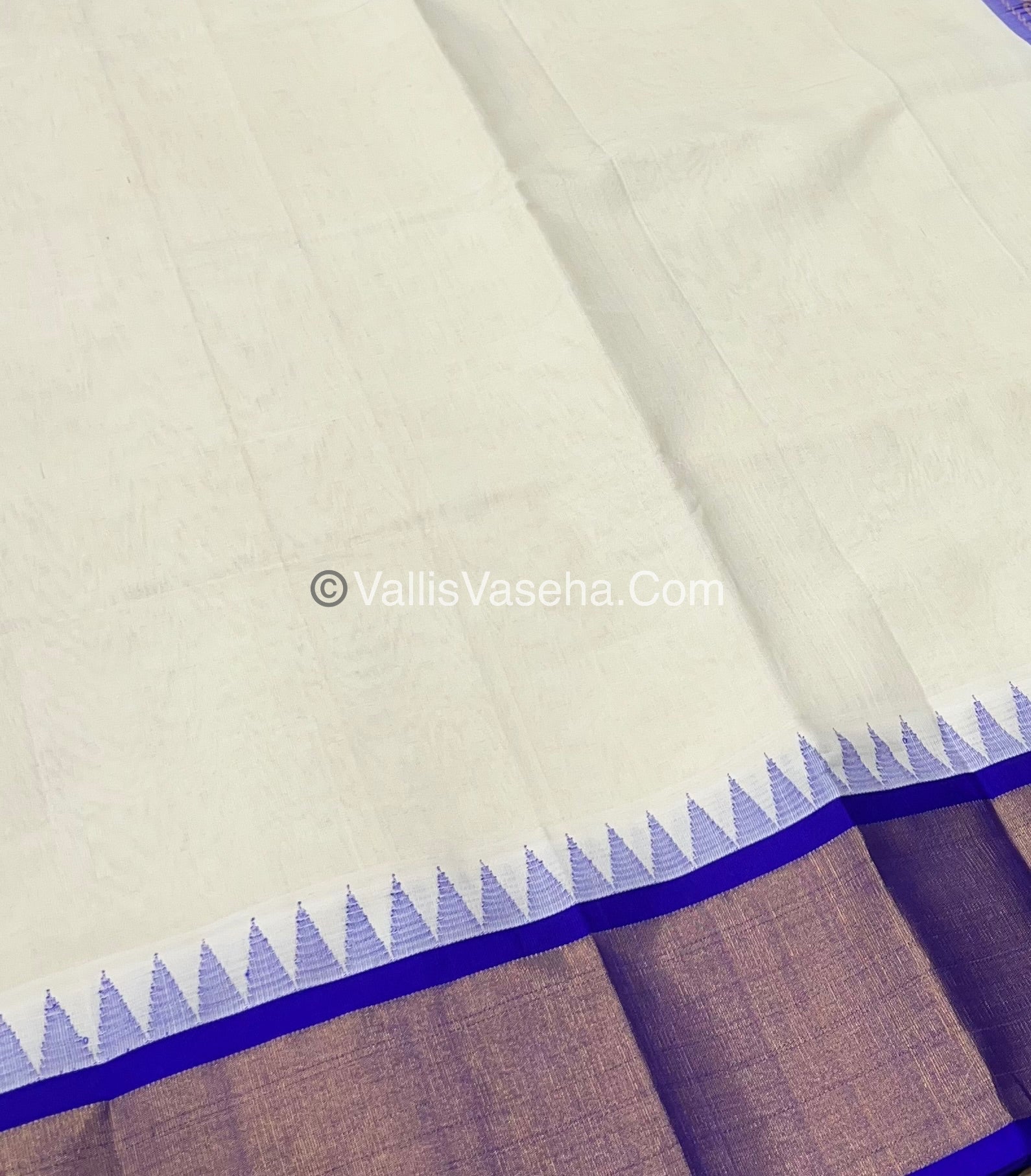Pure Korvai Silk Cotton Saree - Cream With Blue Shade Temple border - VVKSC001