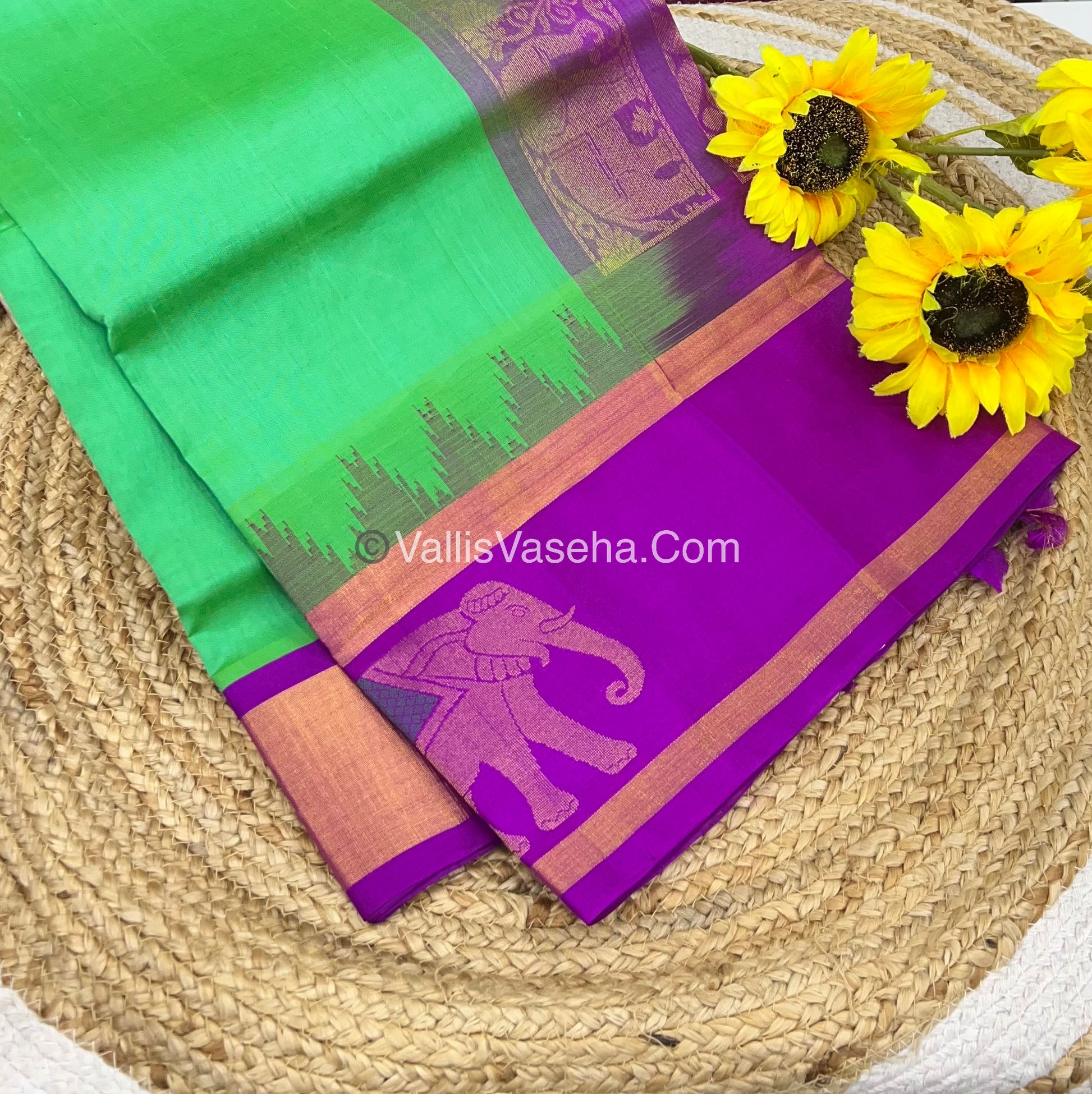 Pure Korvai Silk Cotton Saree - Border Elephant butta Design - VVKSC018