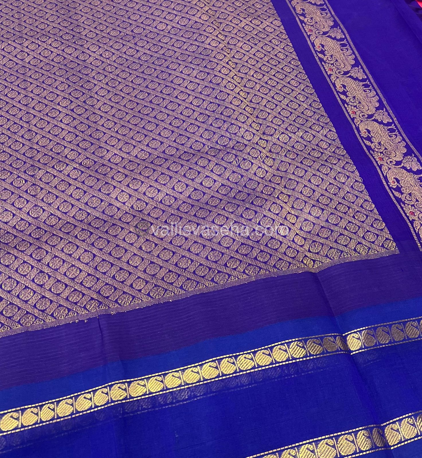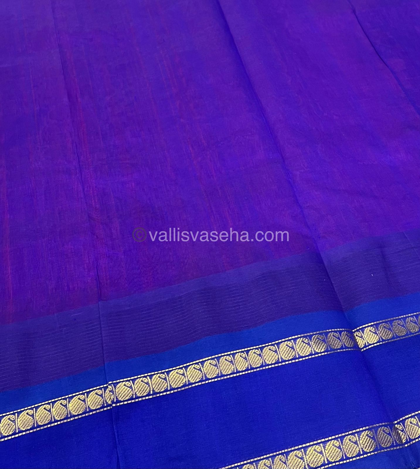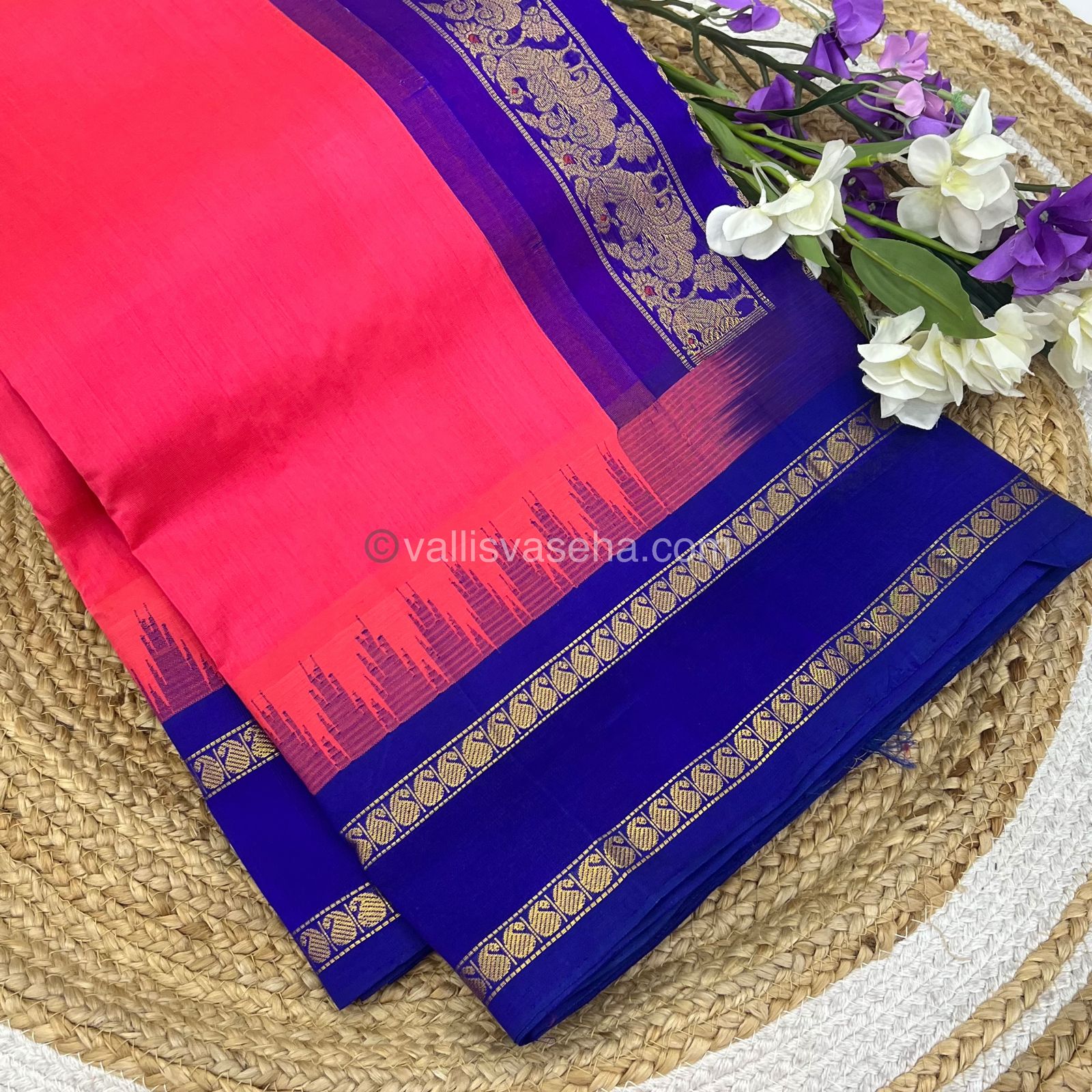 Pure Korvai Silk Cotton Saree - Peachish Pink with Blue - Retta Petta border - VVKSC004