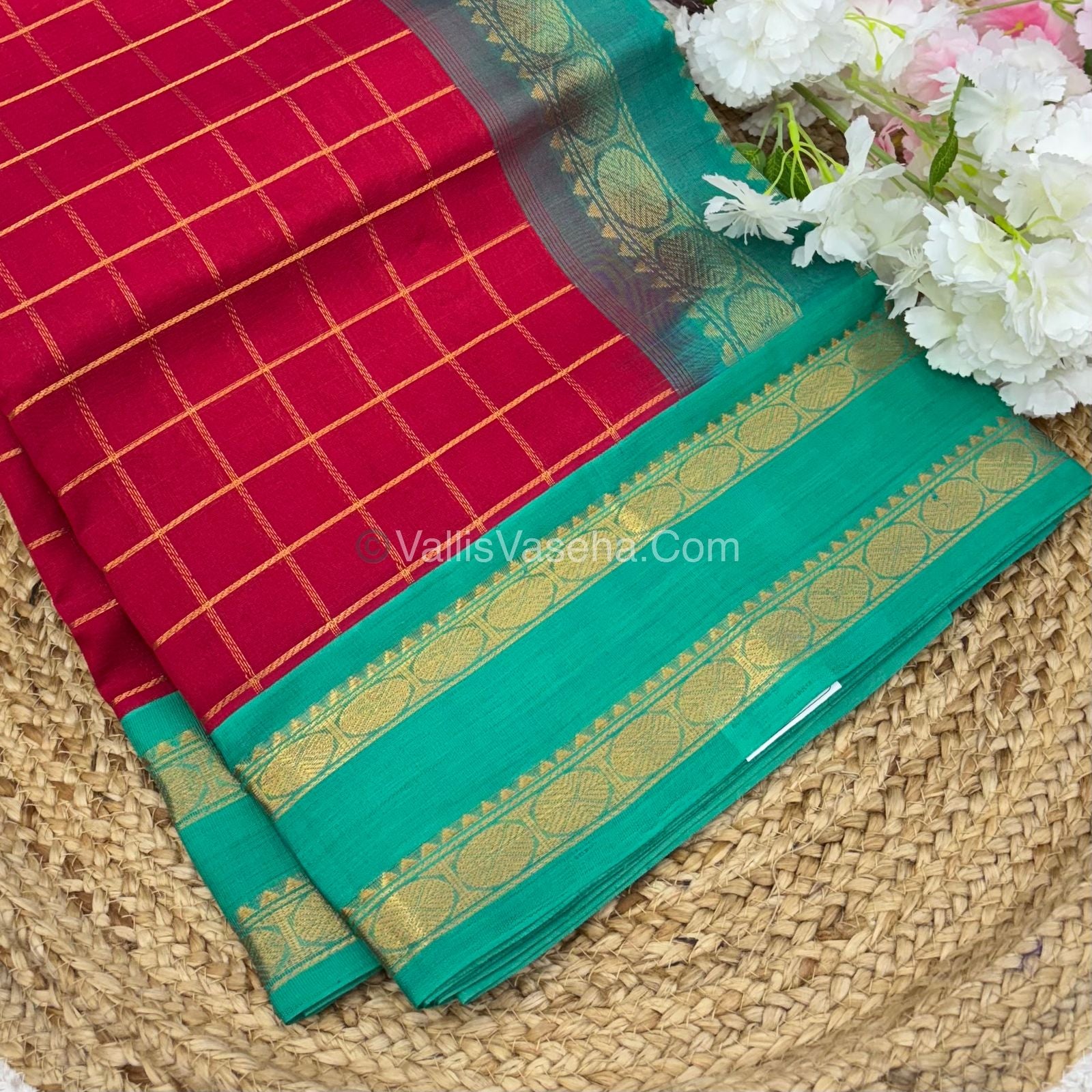 Pure Korvai Silk Cotton Saree - Red With Blue - VVKSC020