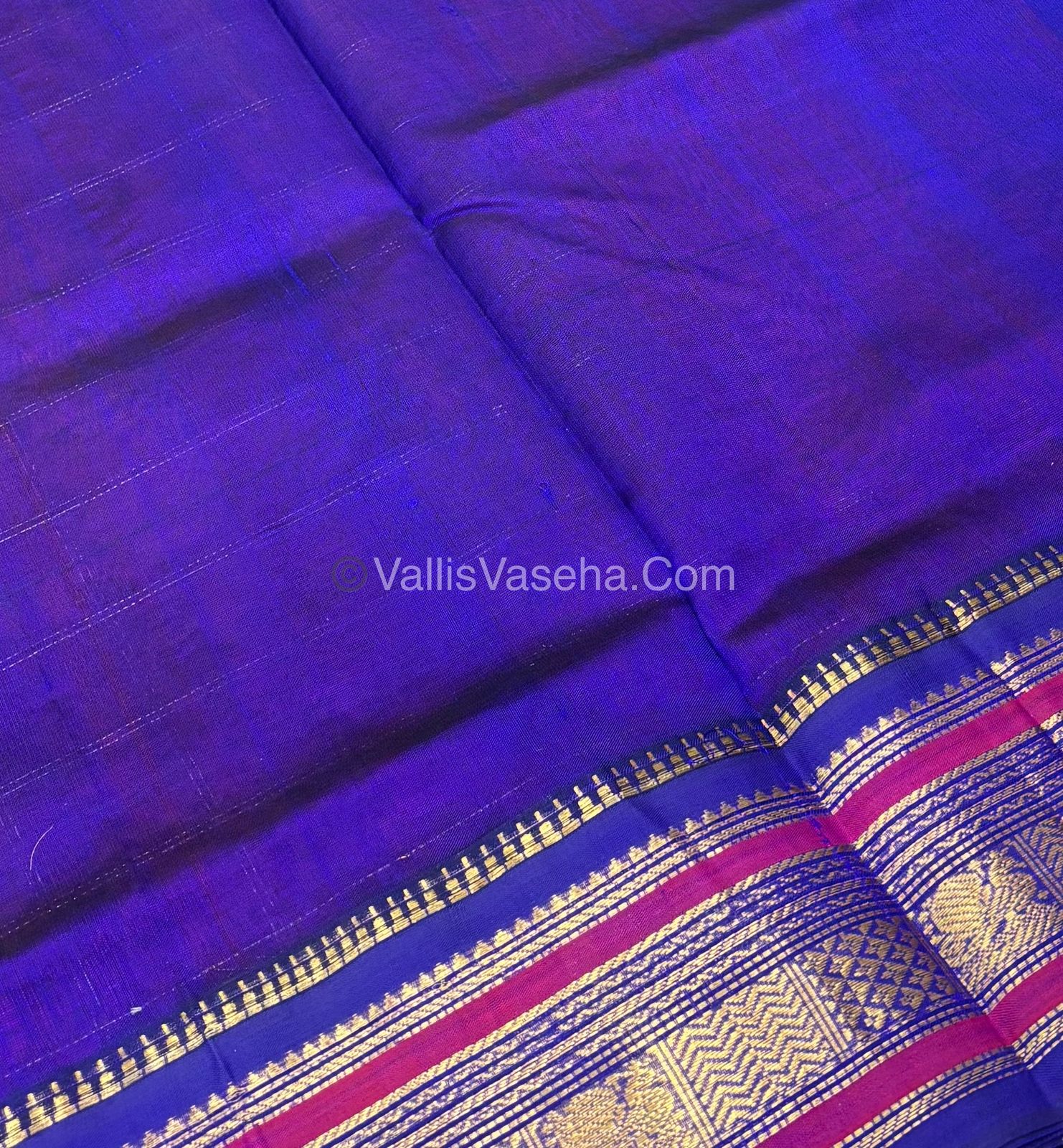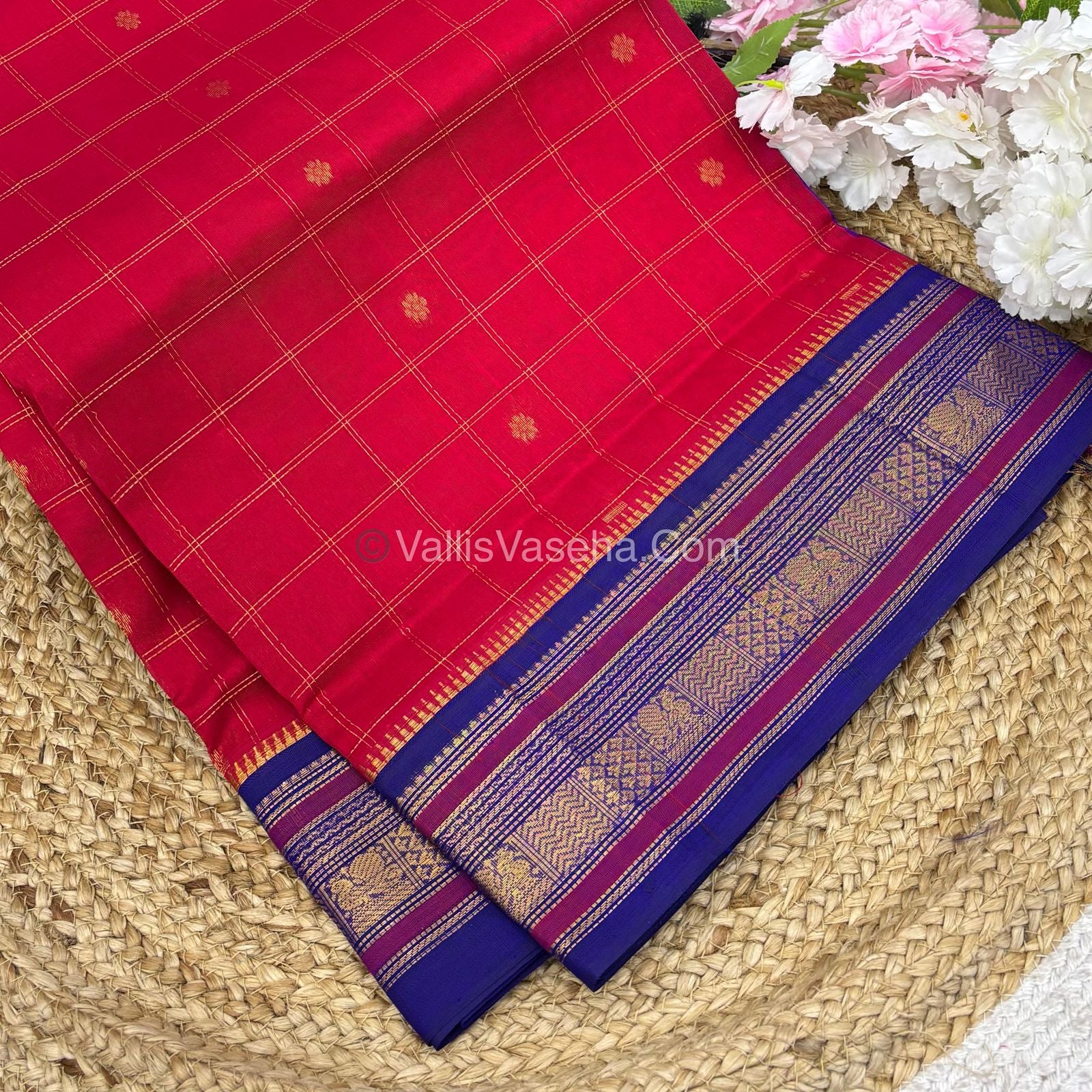 Pure Korvai Silk Cotton Saree - Red With Blue - VVKSC020