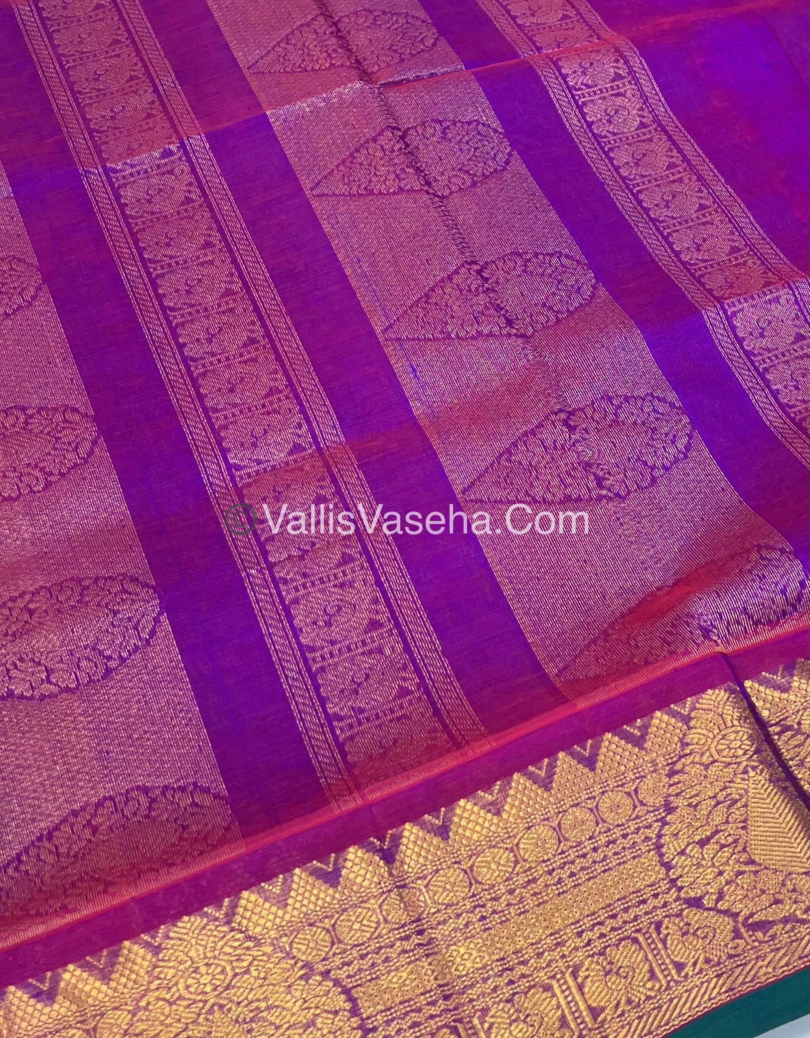 Pure Korvai Silk Cotton Saree - Sneha Green with Purplish Pink - VVKSC019