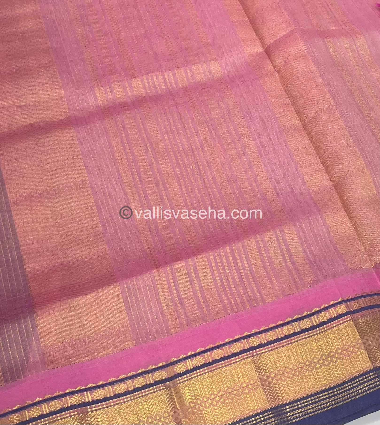 Pure Korvai Silk Cotton Saree - Black with Pink - VVKSC004