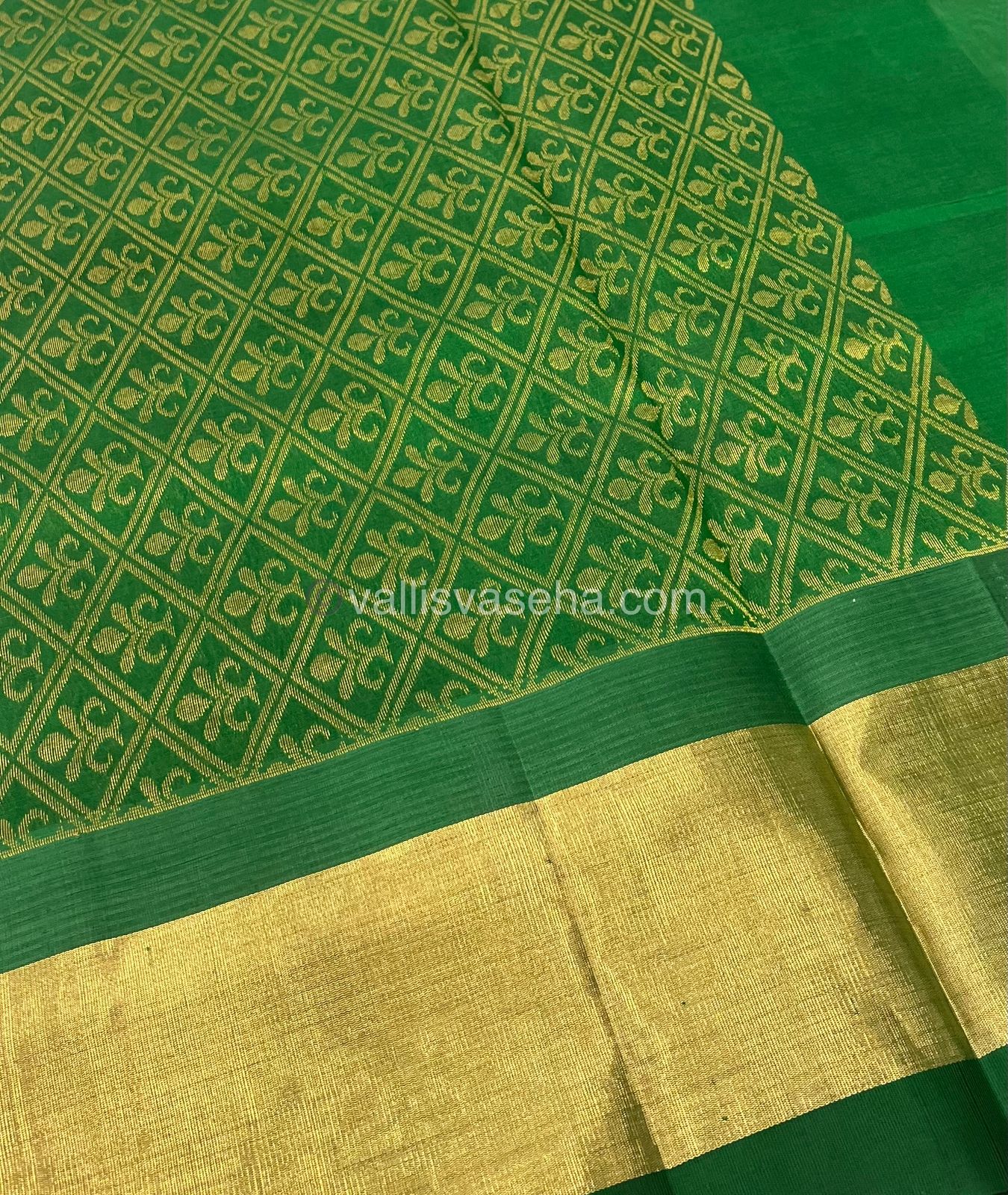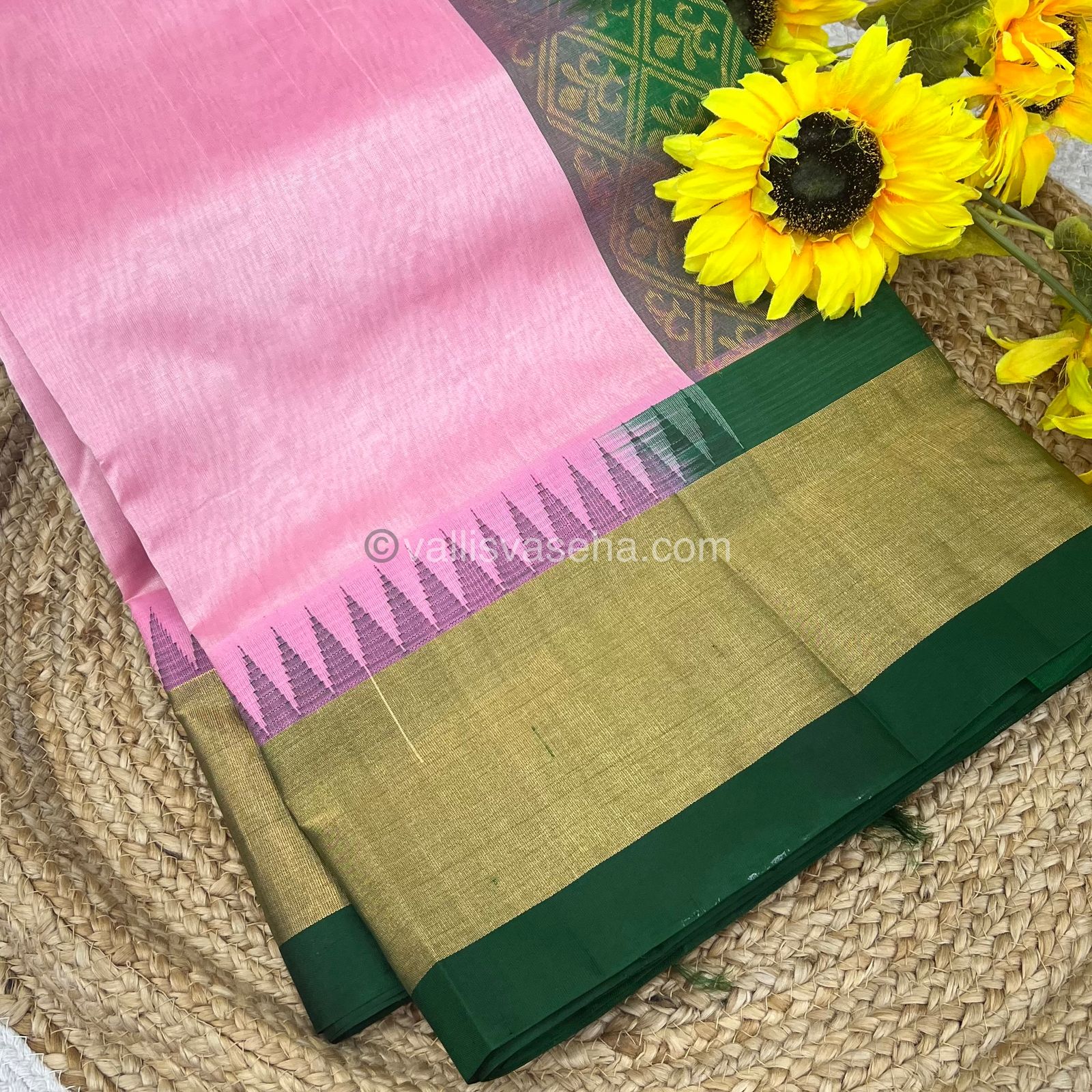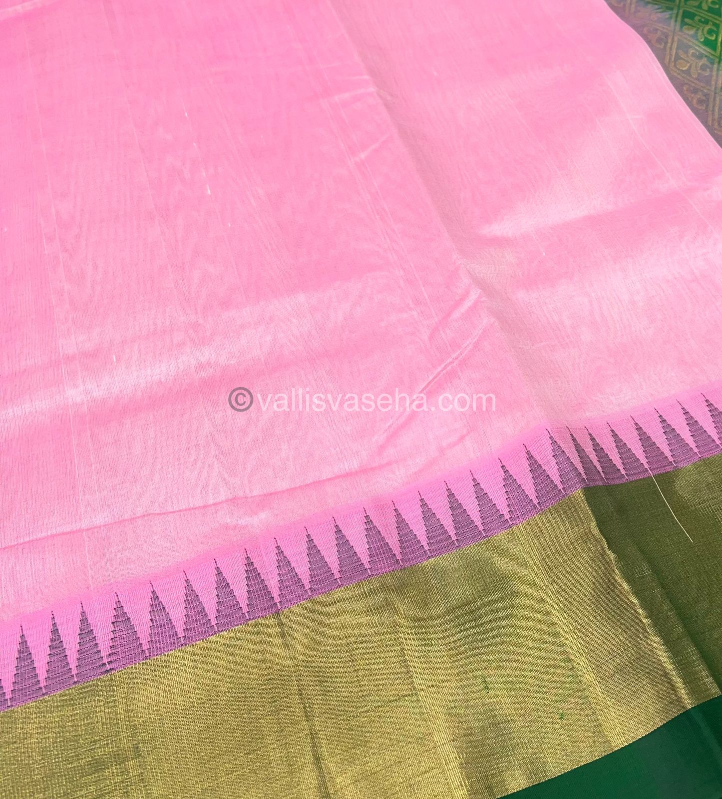 Pure Korvai Silk Cotton Saree - Pink With Green Shade Temple border - VVKSC001