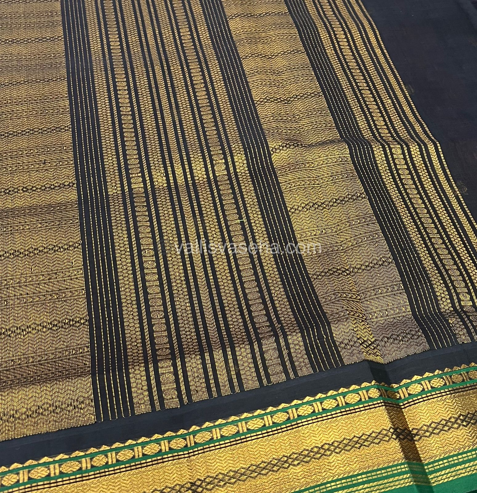 Pure Korvai Silk Cotton Saree - Peach with Green & Black - VVKSC004