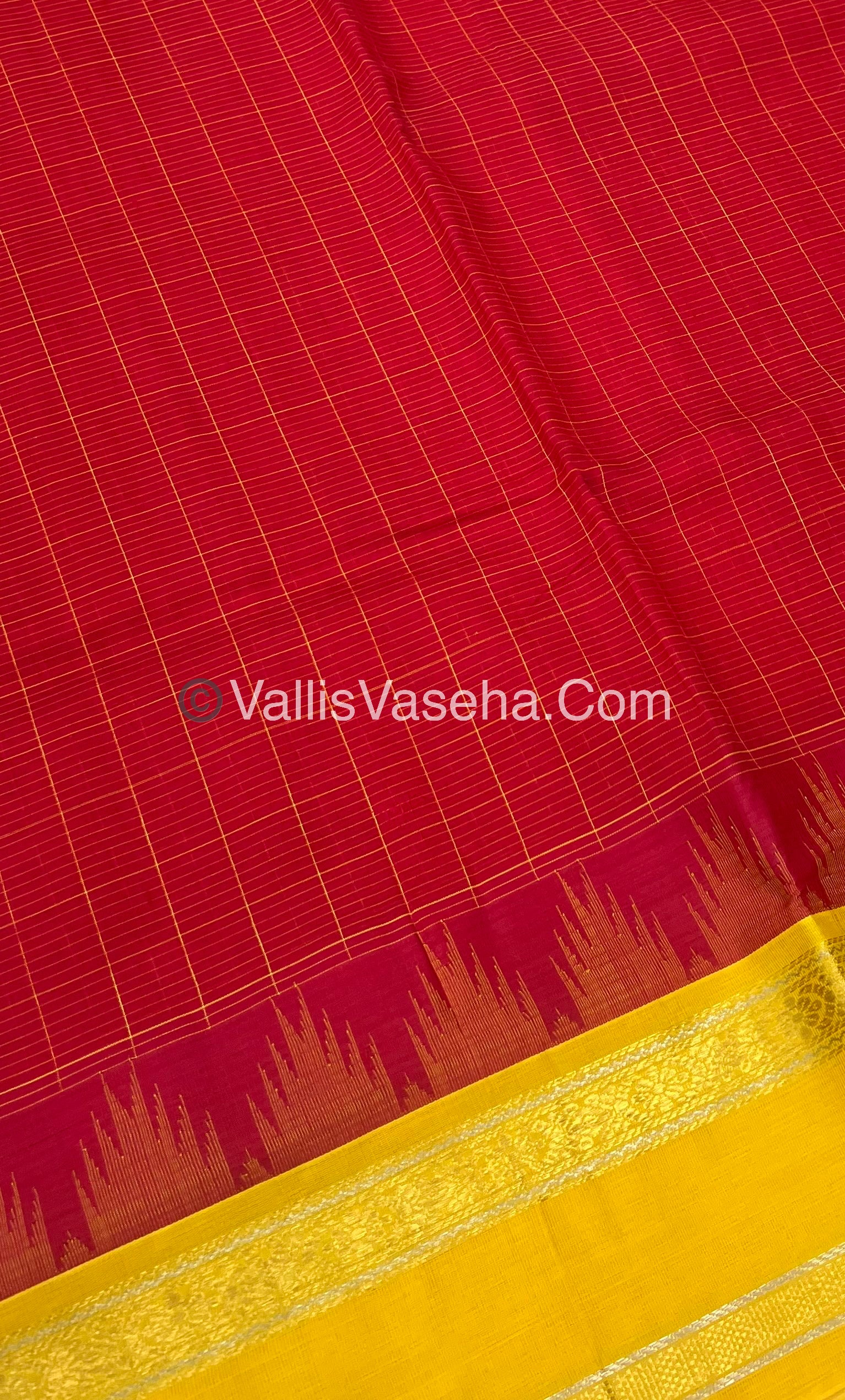 Pure Korvai Silk Cotton - Red with Yellow- Checks Pattern - VVKSC022