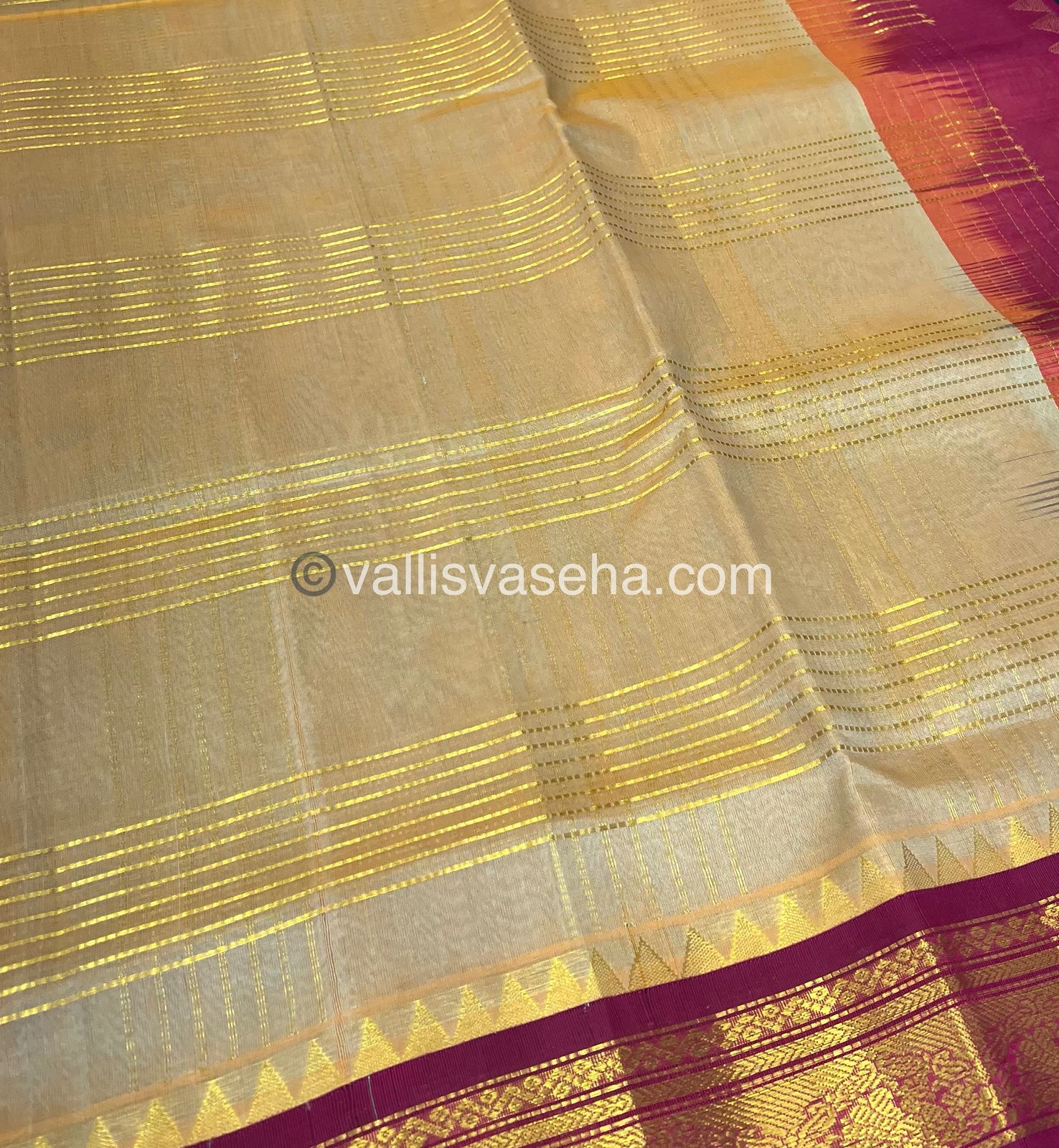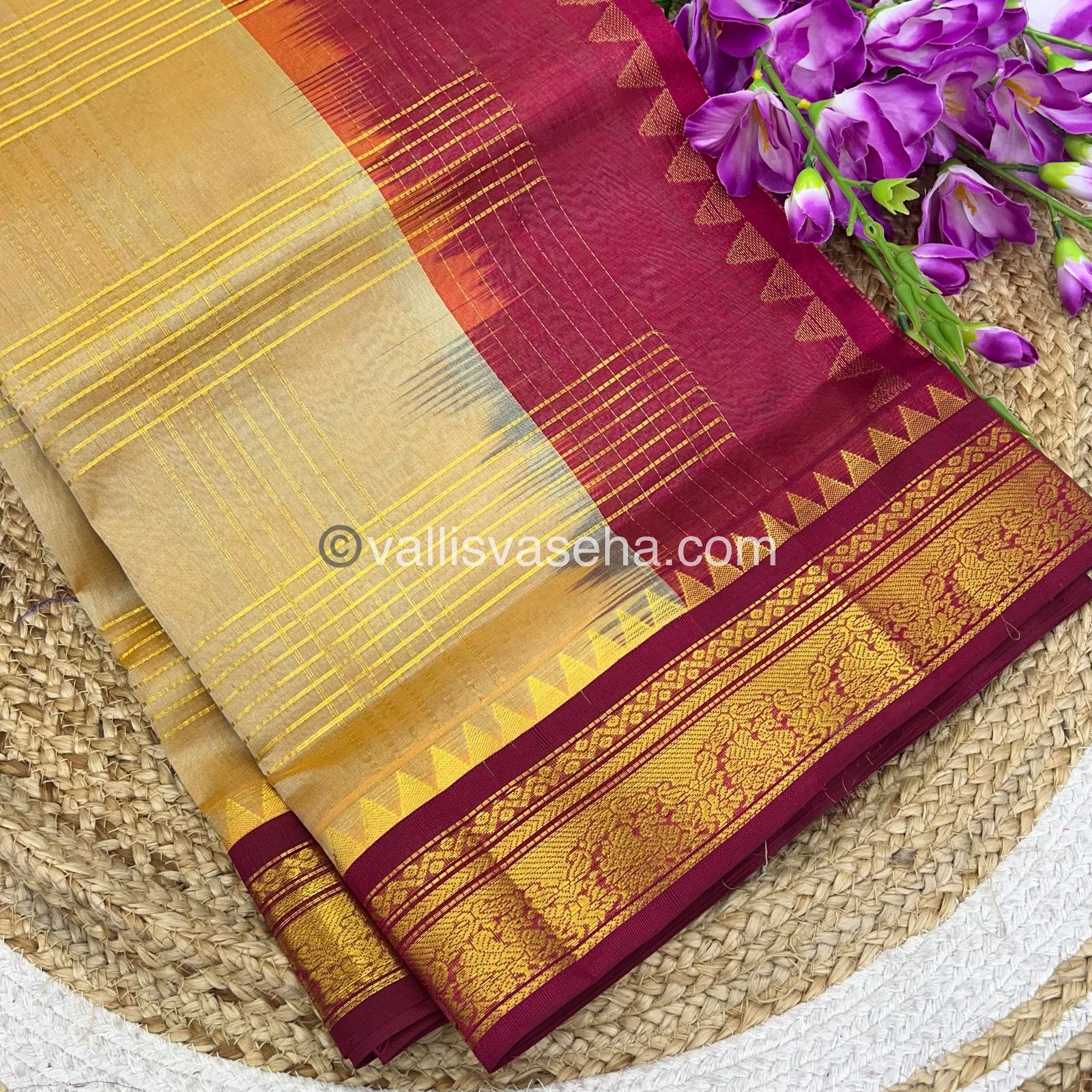Pure Korvai Silk cotton sarees with all over Zari lines in checks pattern and Korvai Kanchi border with 60% silk thread and 40% cotton thread …