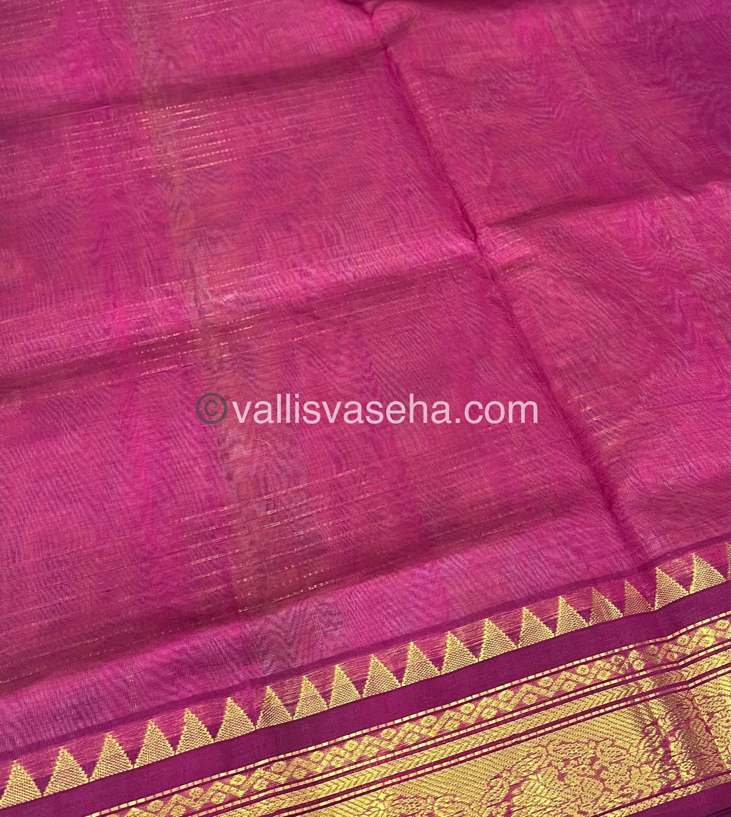 Pure Korvai Silk Cotton - Zari checks lines - Cream Gold & Merunish Pink Combo - VVKSC010